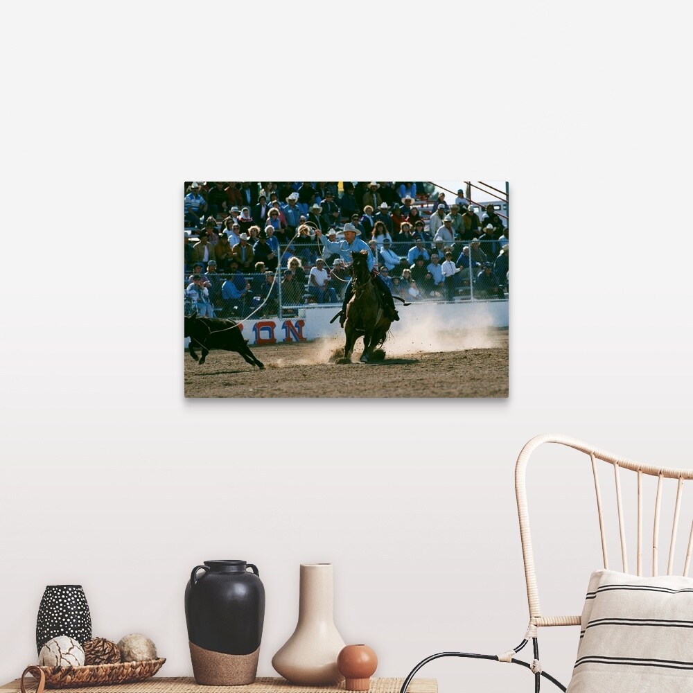"Cowboy Roping Calf At Rodeo" Canvas Wall Art