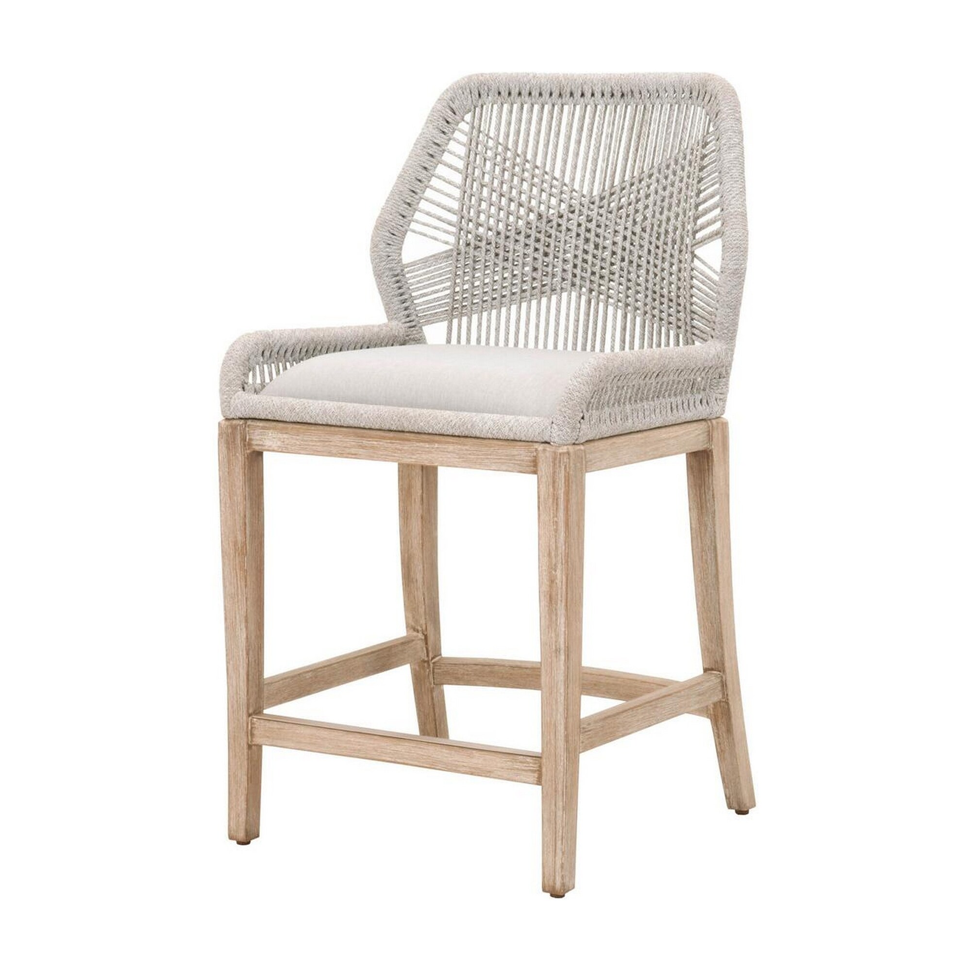 Counter Stool with Intricate Rope Woven Back, Gray