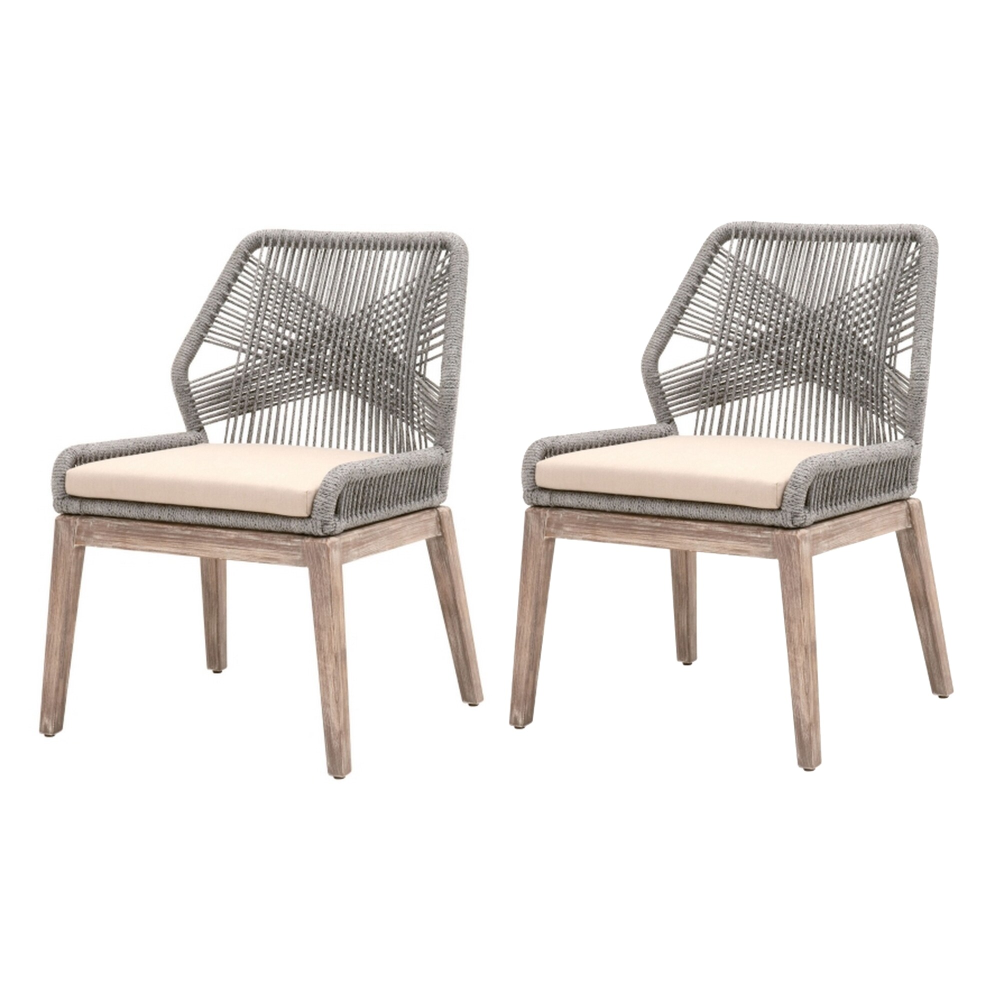 Intertwined Rope Design Dining Chair, Removable Seat Cushion, Set of 2, Gray