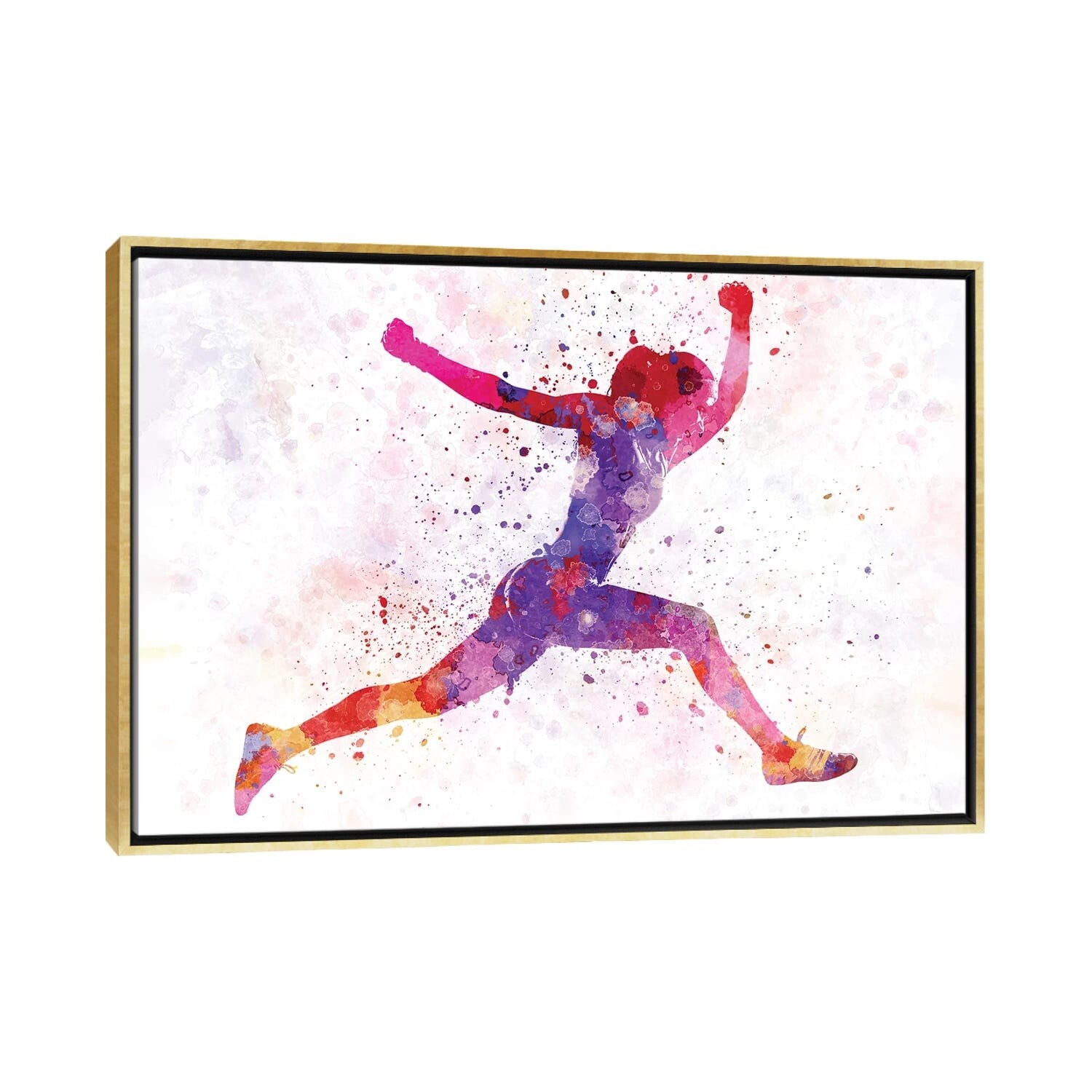iCanvas "Woman Runner Running Jumping Shouting" by Paul Rommer Framed