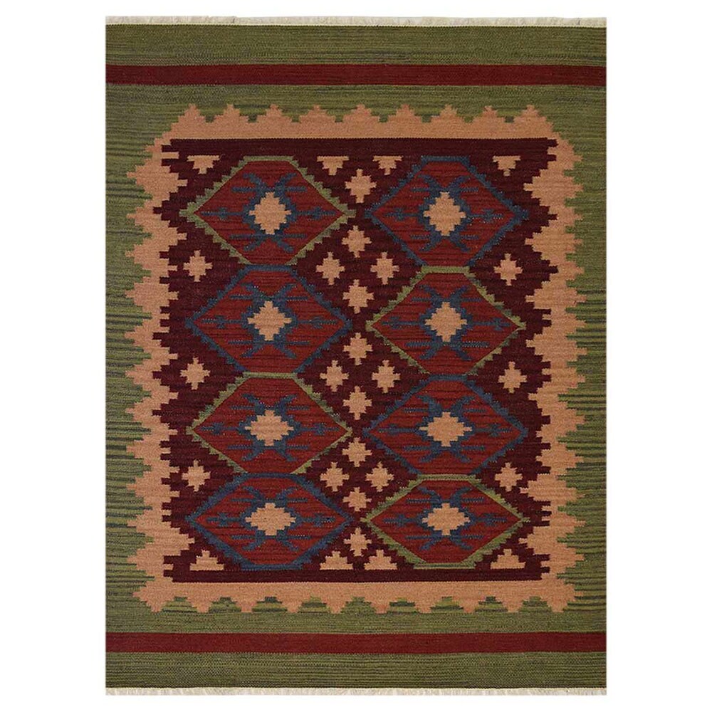Hand Woven Flat Weave Kilim Wool 3'x5' Area Rug Contemporary Burgundy Olive