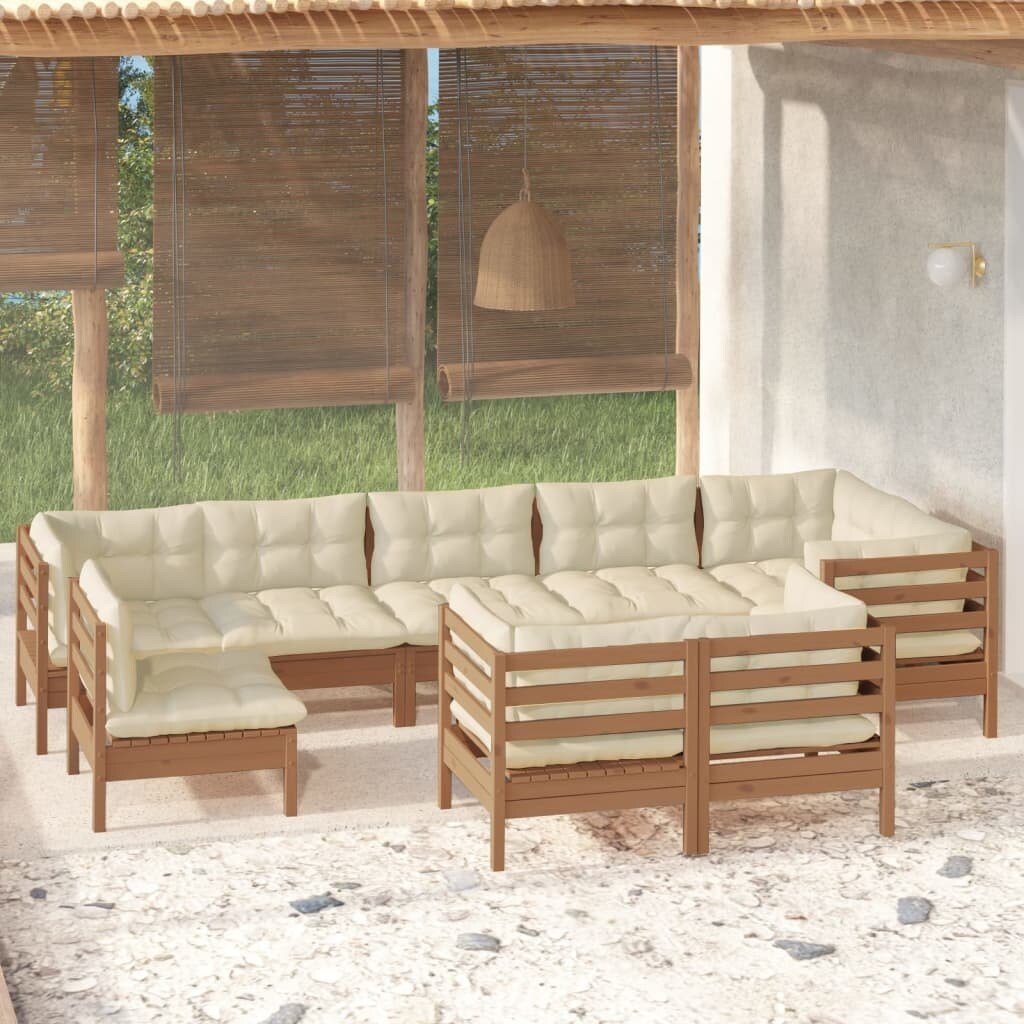 vidaXL 10 Piece Patio Lounge Set with Cushions Solid Pinewood
