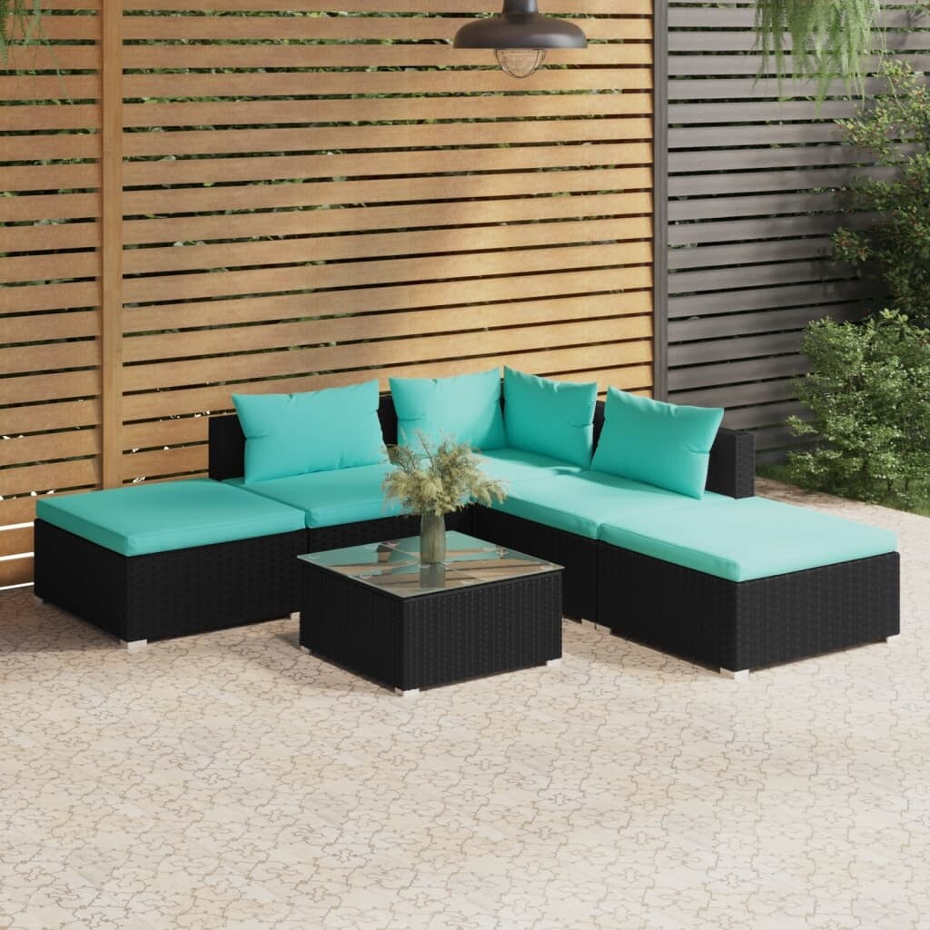 6 Piece Patio Lounge Set with Cushions Poly Rattan Black