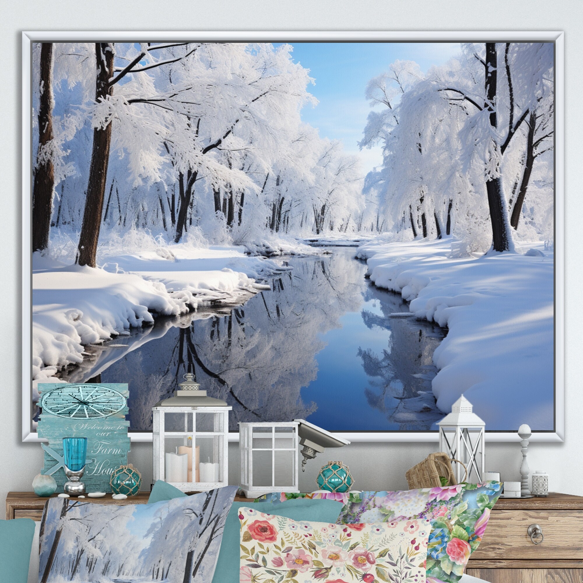 Designart "Winter Snowy Serenity V" Winter Landscape Framed Canvas Art Print