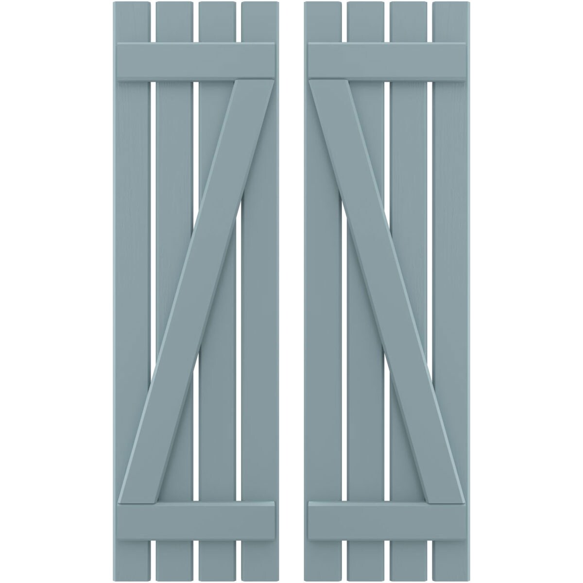 Rustic Four Board Joined Board-n-Batten Faux Wood Shutters (Per Pair), Primed Tan