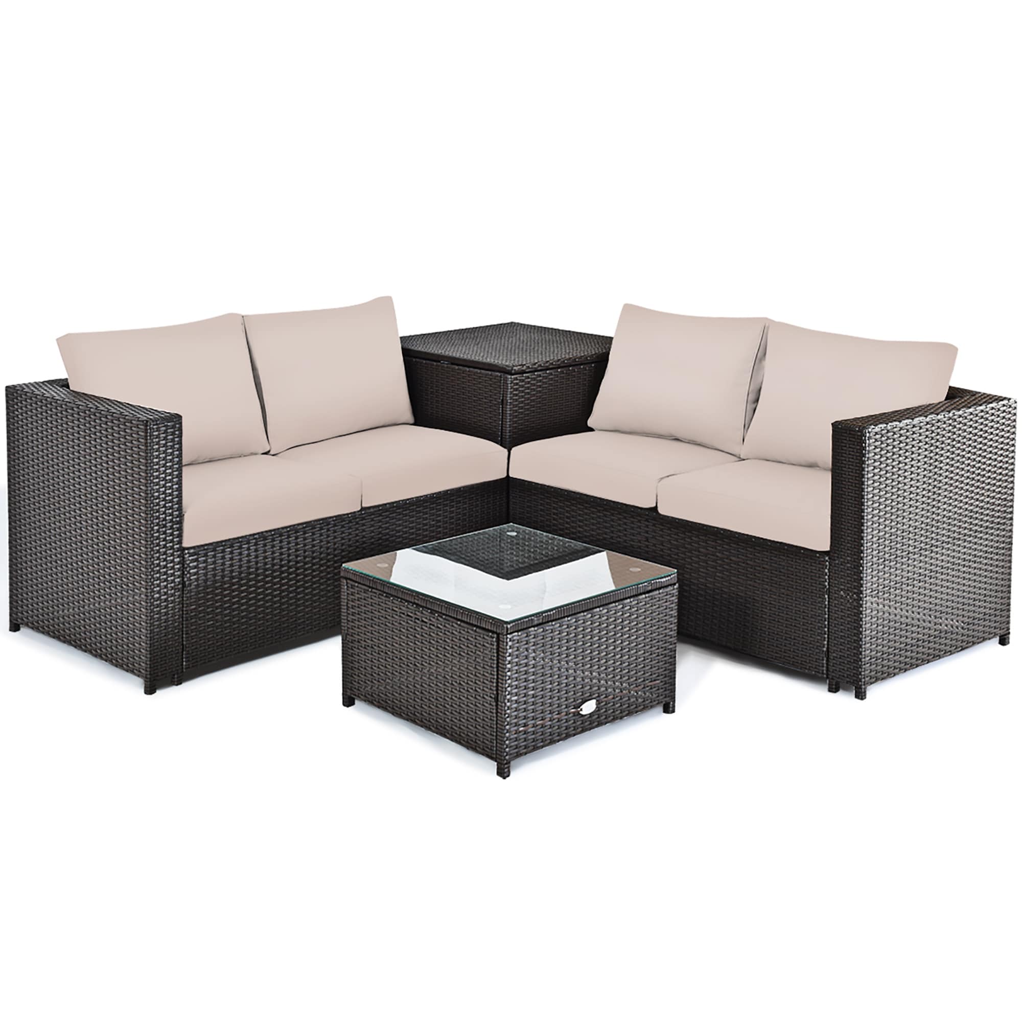 4 PCS Cushioned Rattan Patio Conversation Set with Coffee Side Table