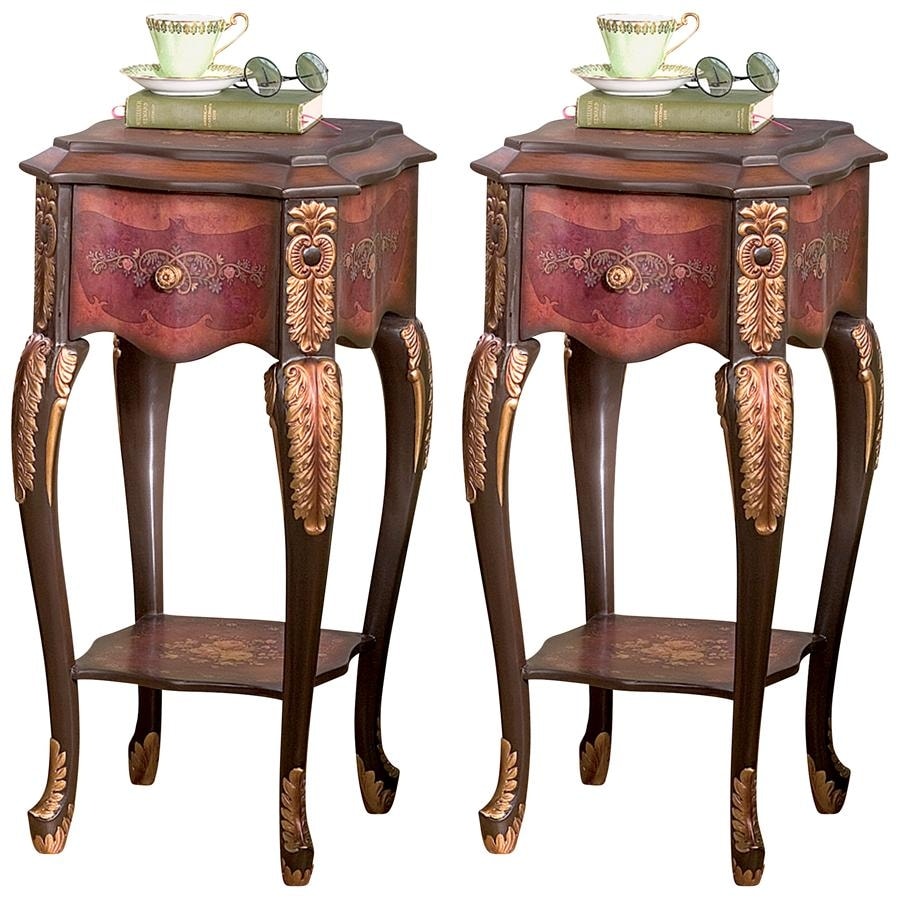 Design Toscano Floral Bouquet Chiffoniere Side Table: (Set of 2)