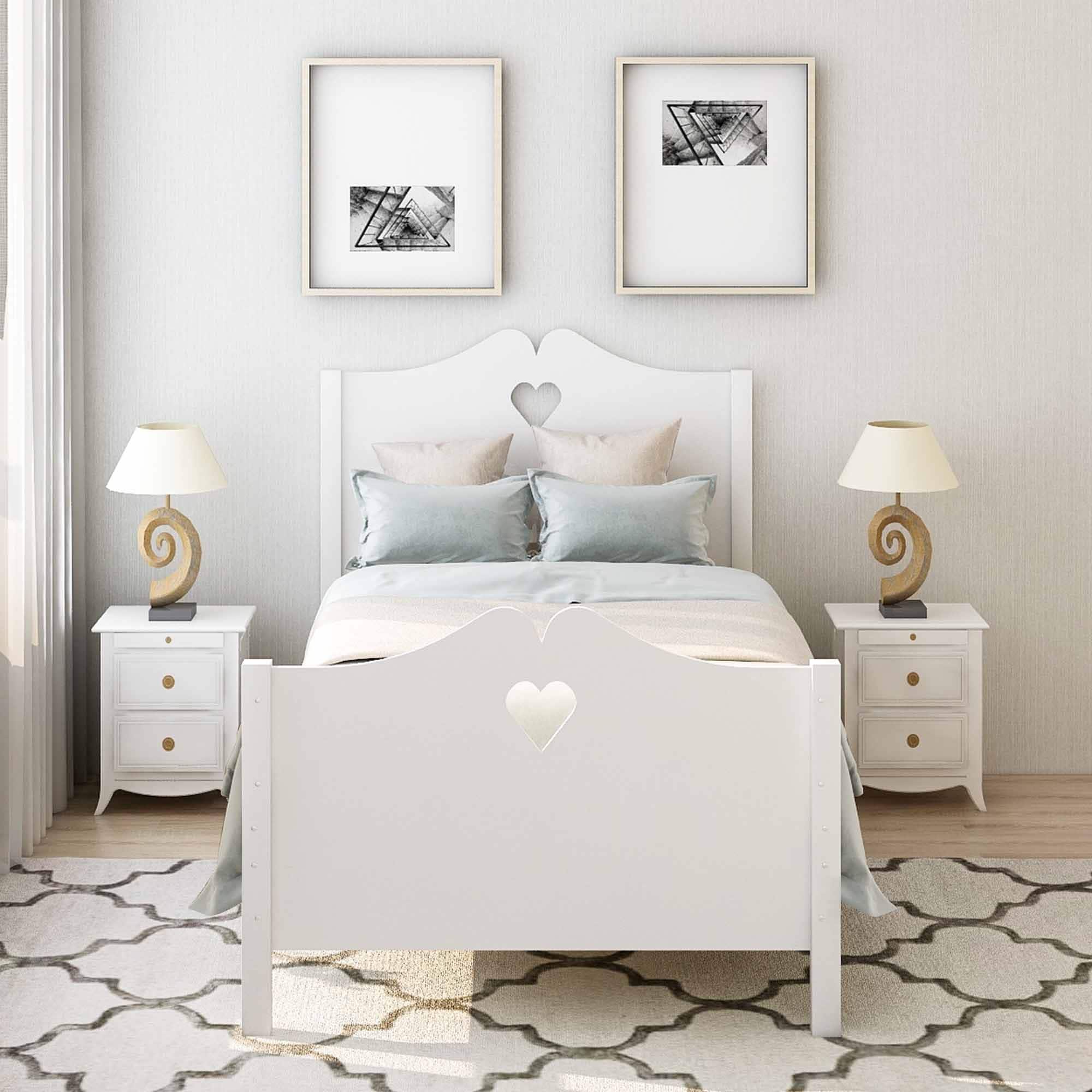 Elegant Design Twin Size Wood Platform Bed Solid Pine Wood and 10 Supporting Slats with Trundle, White