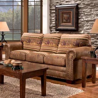 Rancho Rustic Brown Buckskin Fabric Sofa