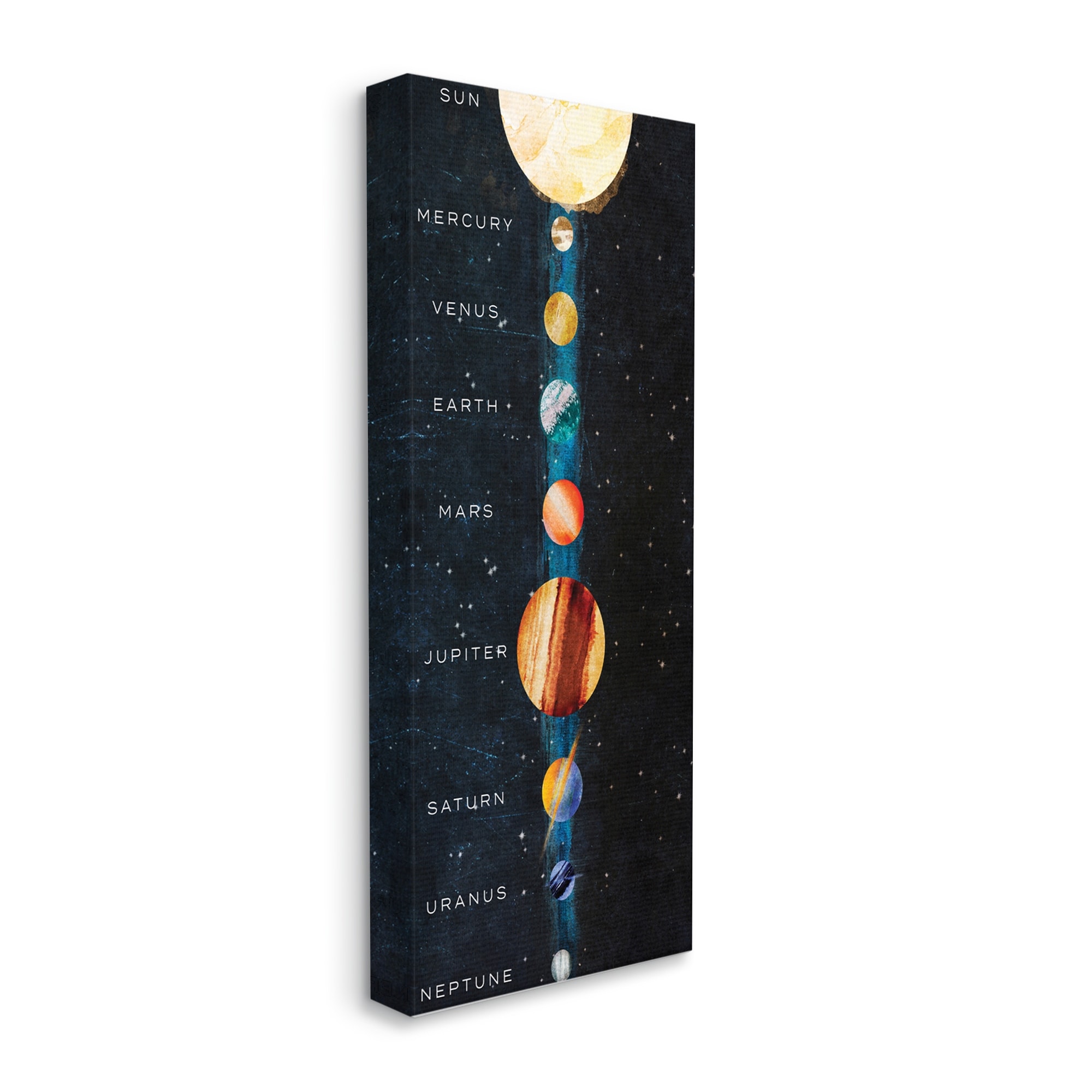 Stupell Industries Solar System Planet Cluster Watercolor Milky Way Galaxy Canvas Wall Art - Blue