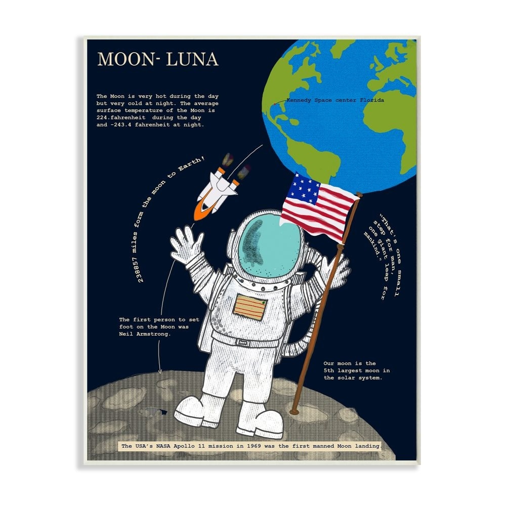 Stupell Solar System Moon Facts Astronaut in Space Wood Wall Art - Blue