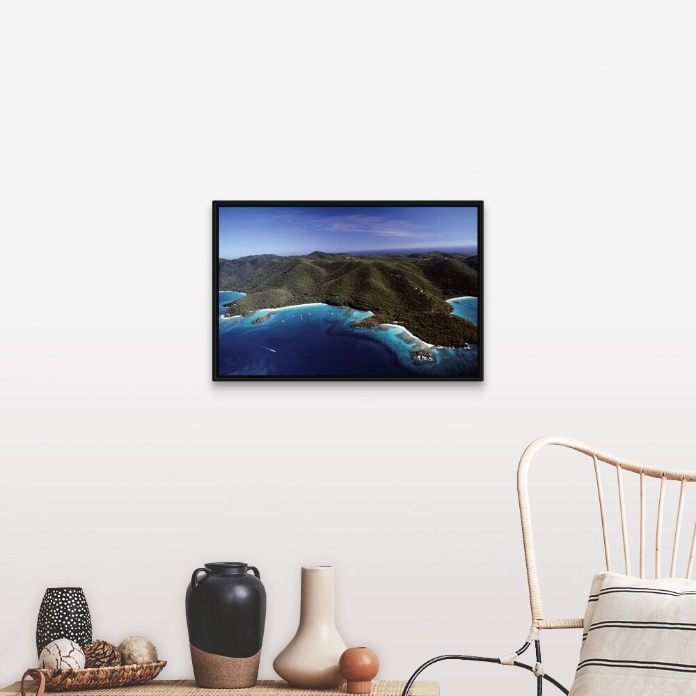 "US Virgin Islands, St. John, Caneel Bay, High angle view of boats in the sea" Black Float Frame Canvas Art
