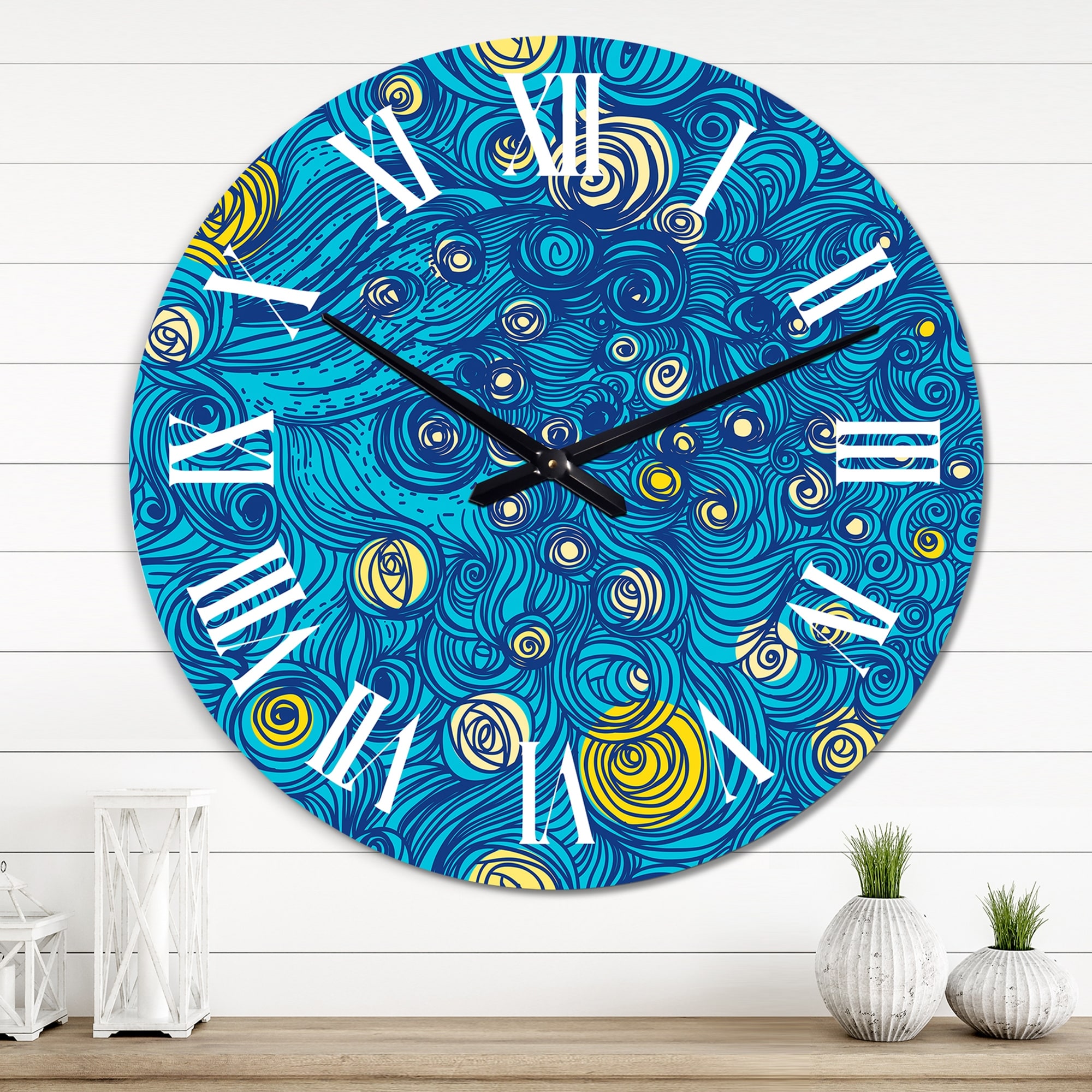 Designart 'Starry Night Yellow And Blue' Modern wall clock