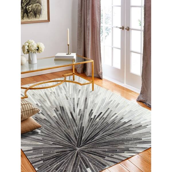 Hand-Stitched Geometric Leather Area Rug by Tufty Home - 5' x 8'