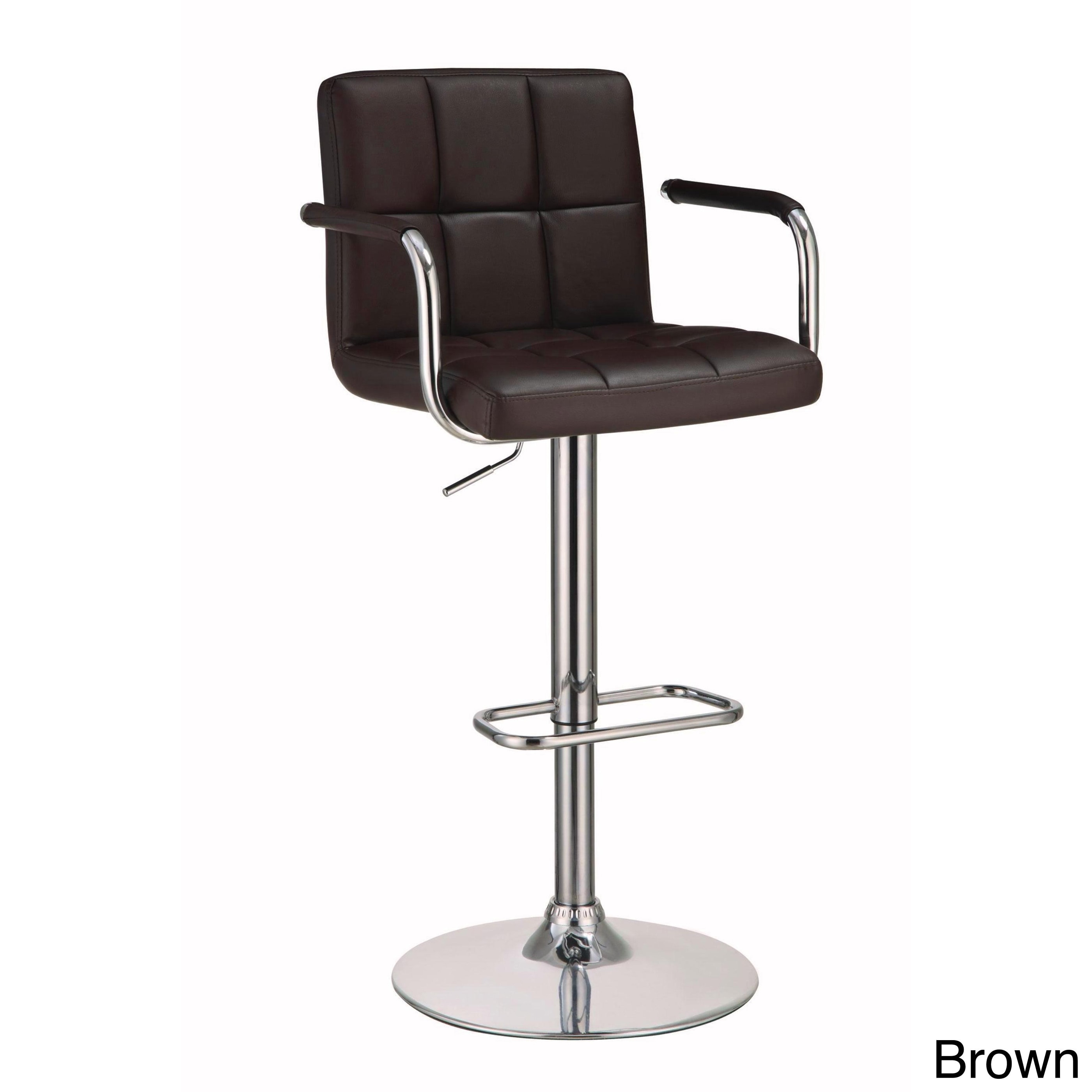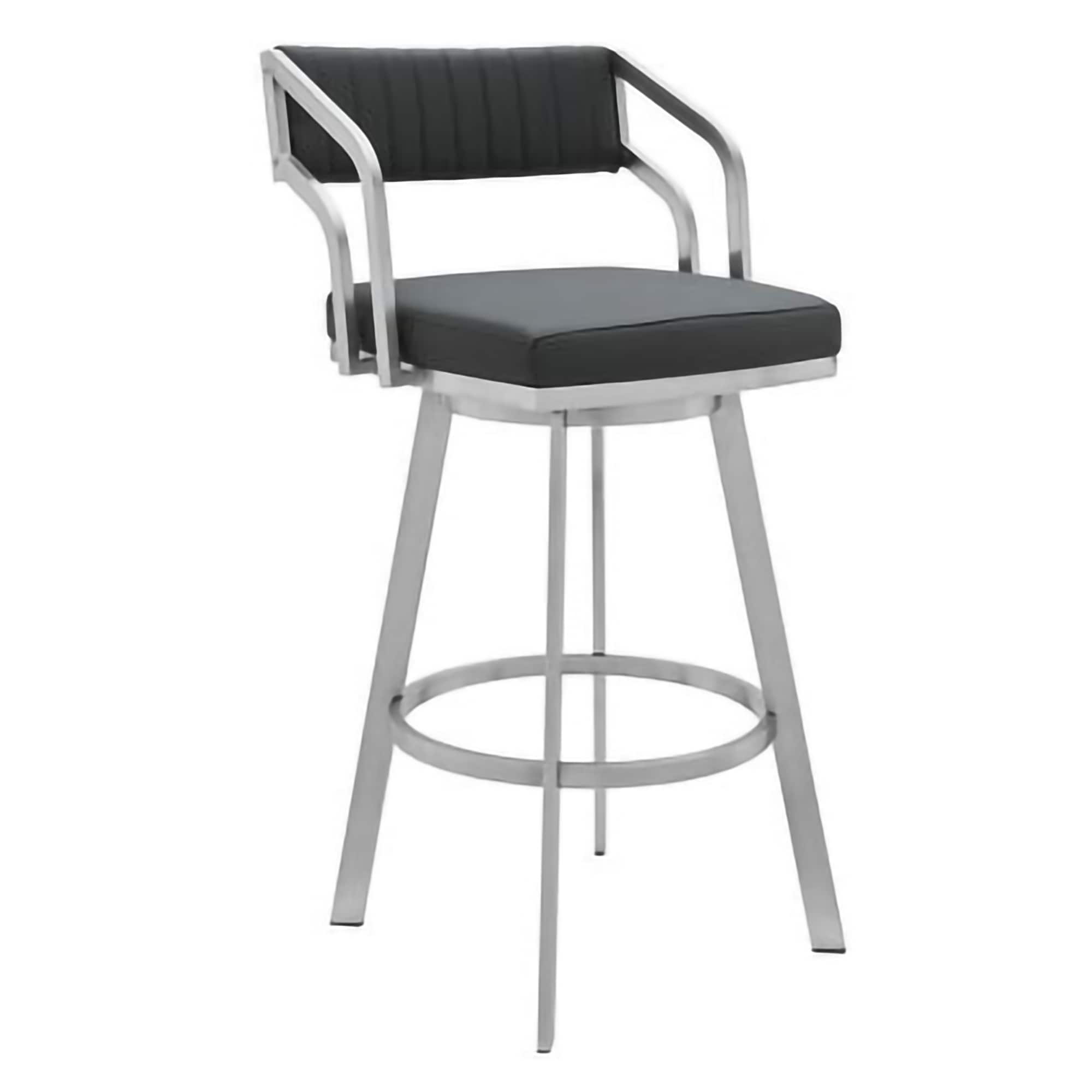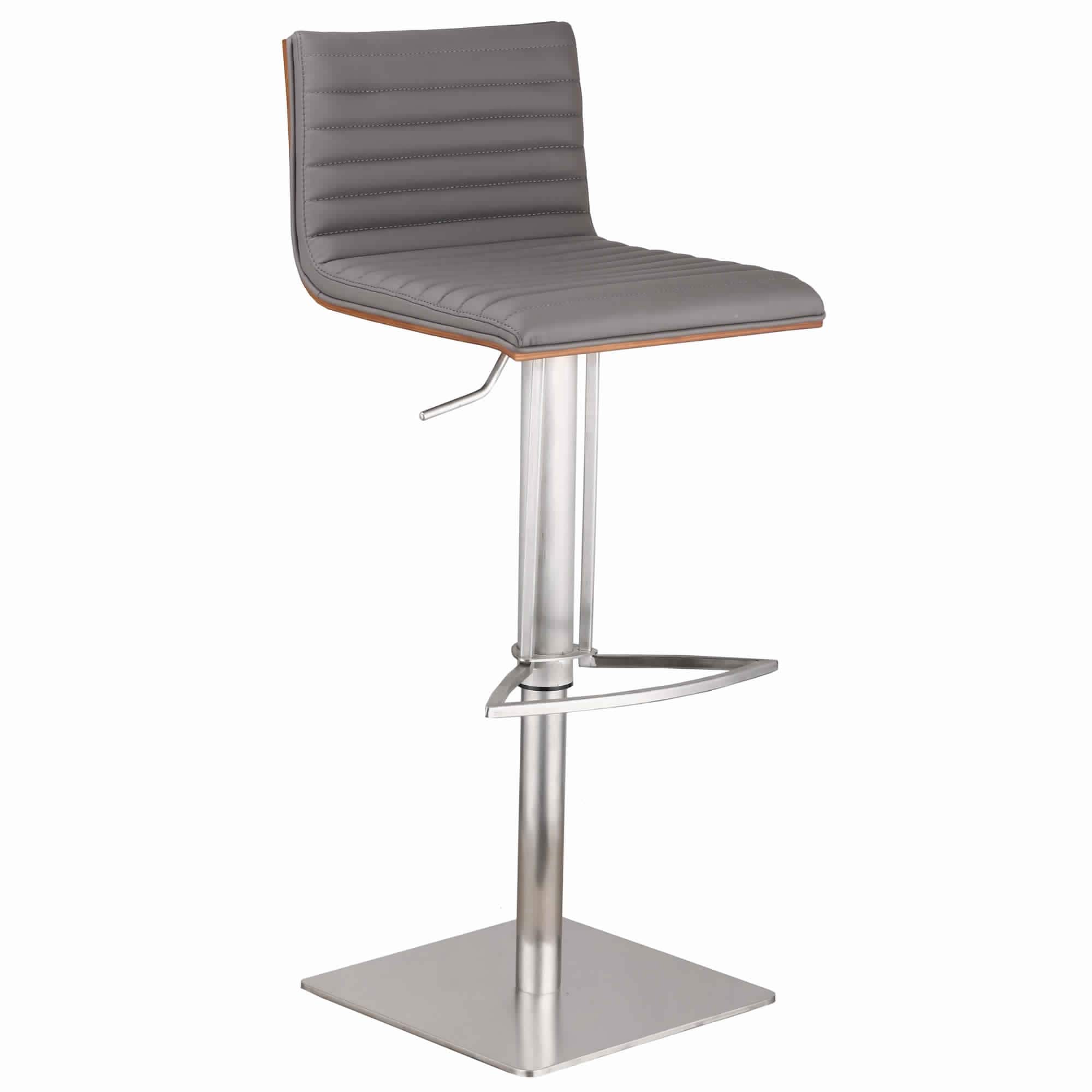 Faux Leather Adjustable Barstool with Horizontal Stitching,Gray and Chrome