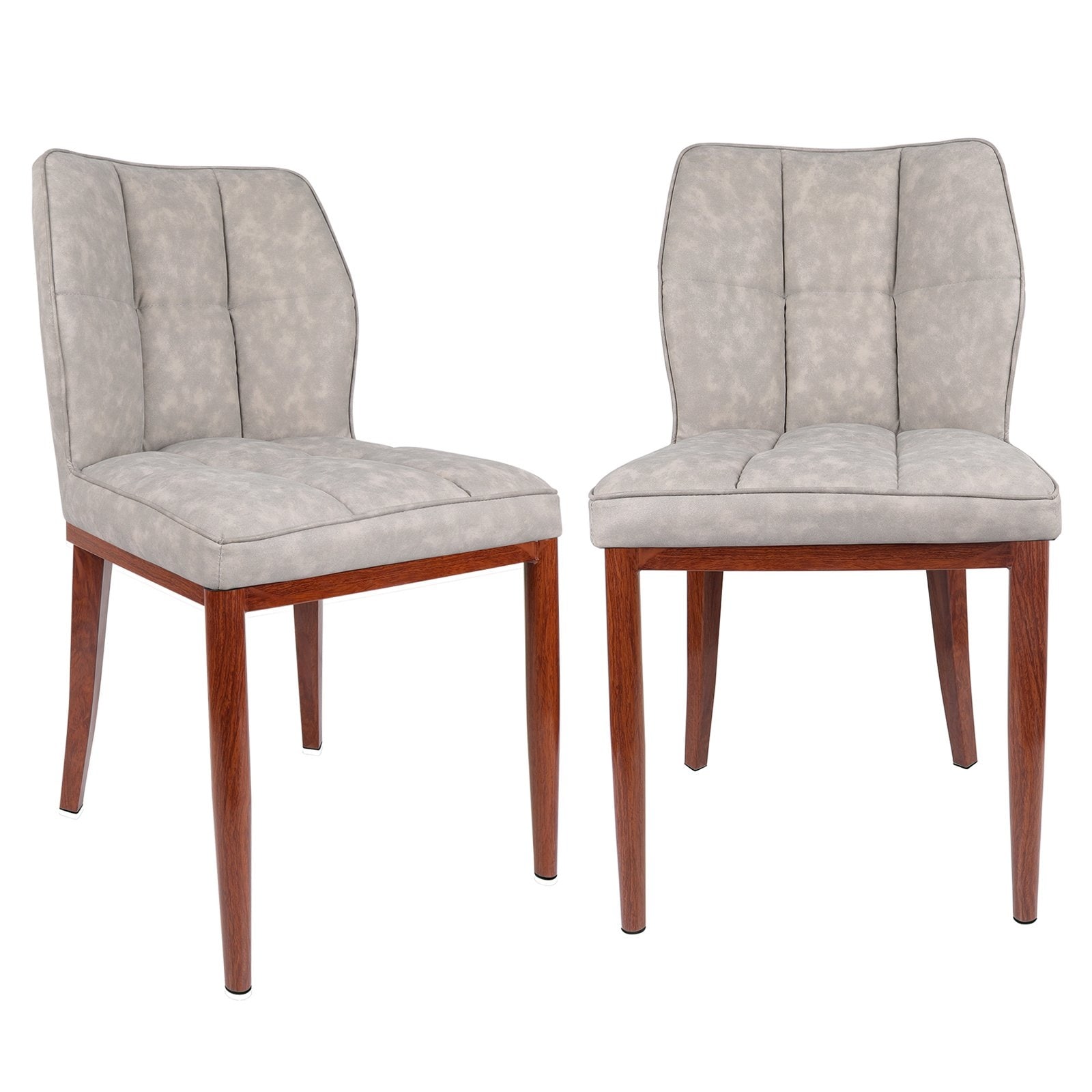 Stitched Faux Leather Dining Chairs Upholstered w/ Metal Legs Set of 2 - 18.5x17.3x34.6"