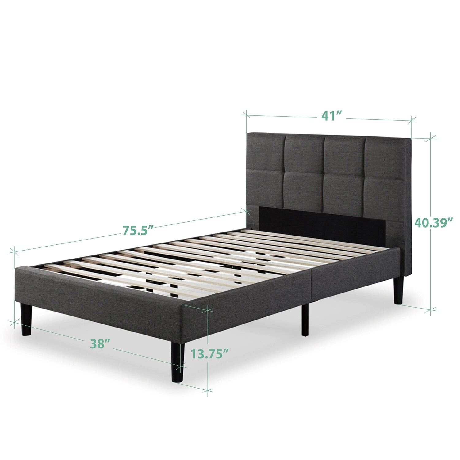 Priage by ZINUS Grey Upholstered Square Stitched Platform Bed Frame