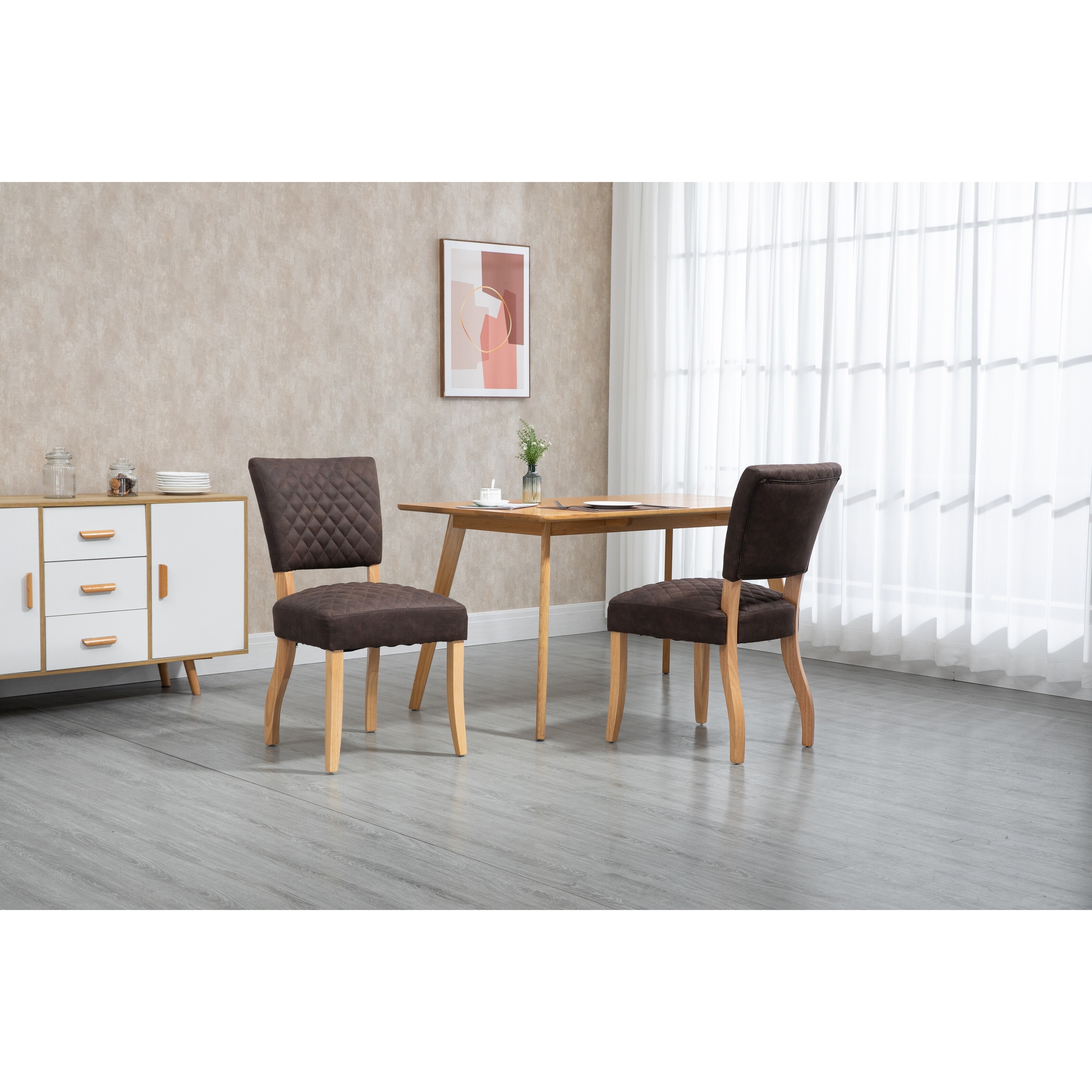 Upholstered Diamond Stitching Leathaire Dining Chair Solid Wood Legs