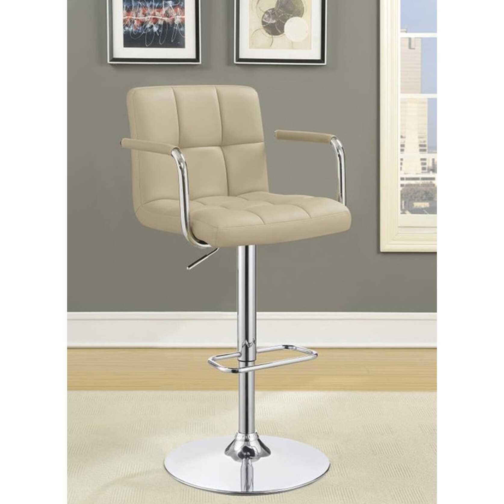 Modern Beige Square Stitched Upholstered Adjustable Swivel Stool