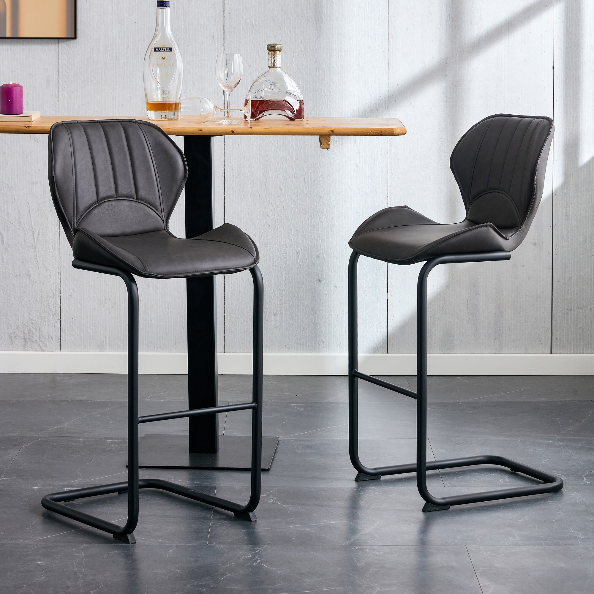 Set of 4, PU Leather Upholstered Barstools with Metal Legs and Footrest, Backrest with Stitching Design