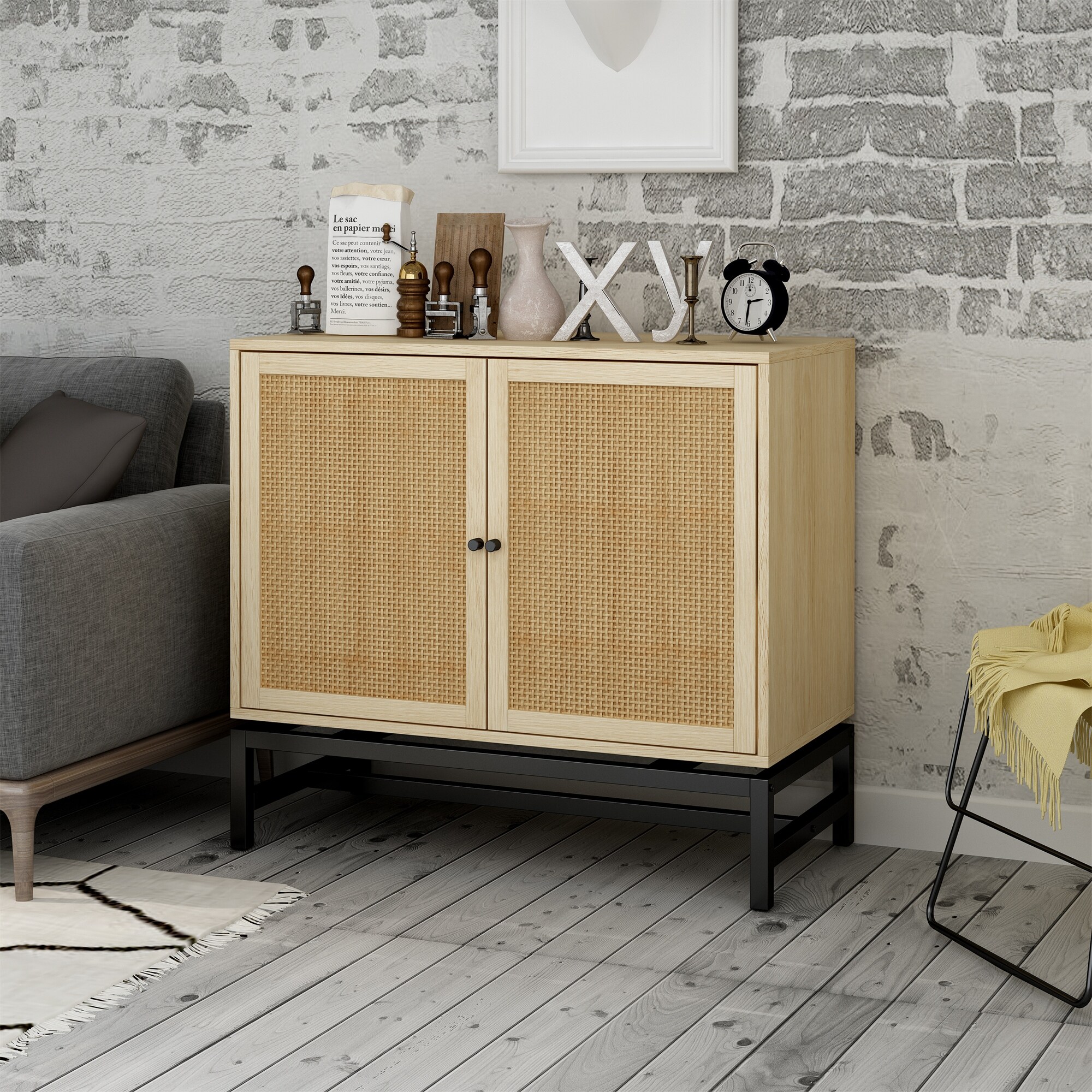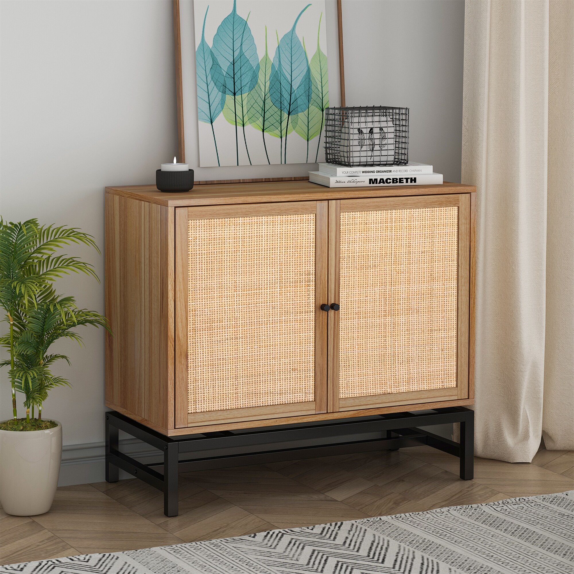 Natural Rattan 2 Door high cabinet,Built-in adjustable shelf