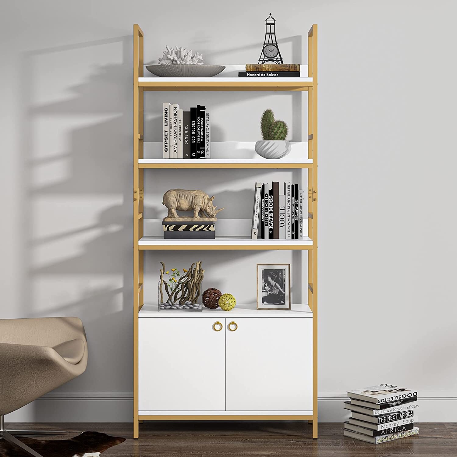 5 Tier Home Office Bookcase Open Bookshelf Storage Large 5 Shelf Bookshelf Furniture with Metal Frame