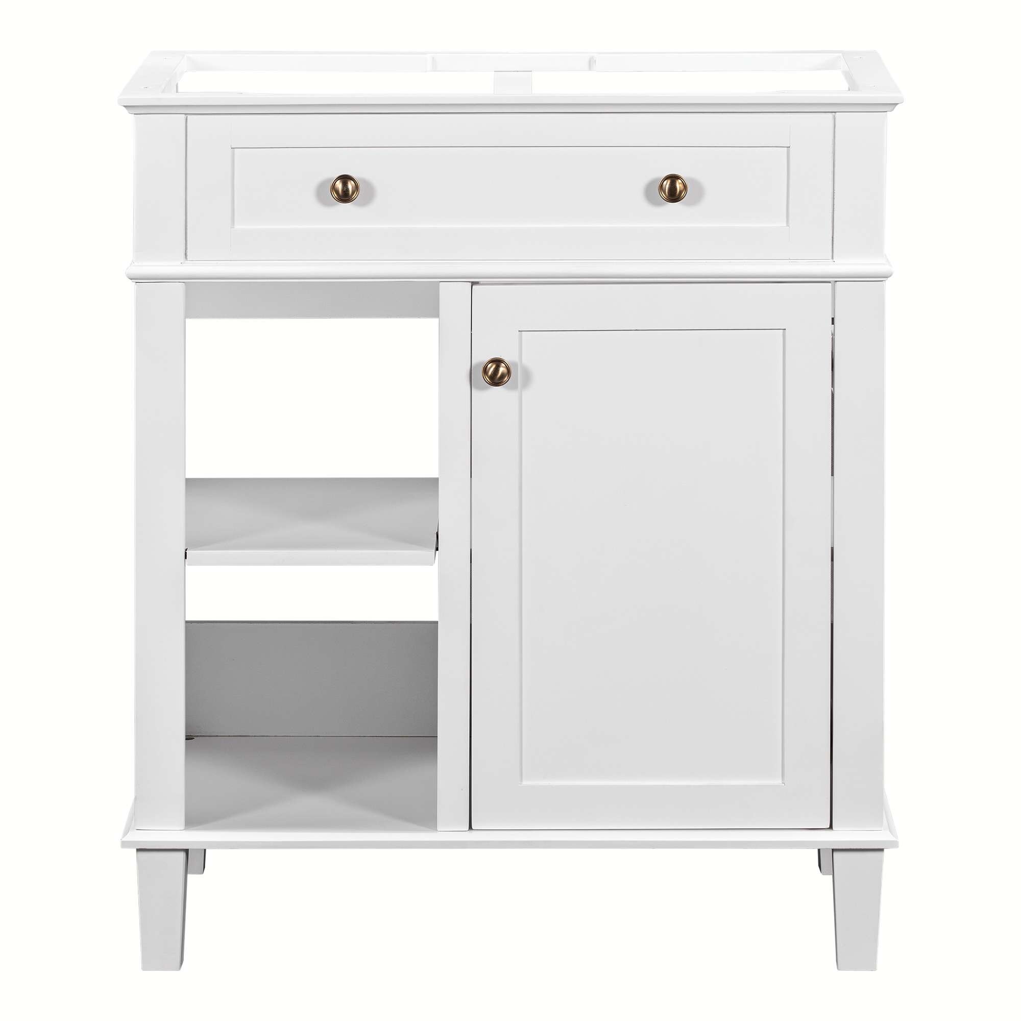 White Bathroom Vanity with One Cabinet, Adjustable Shelf, and 30-inch Width