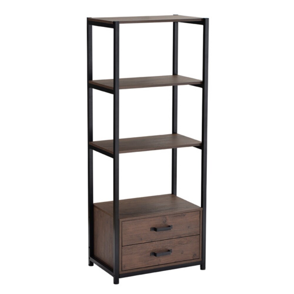 4-Tier Bookshelf Standing Shelf Unit Storage Organizer with 4 Open Storage Shelves and Two Drawers - 23.6*15.7*59.80