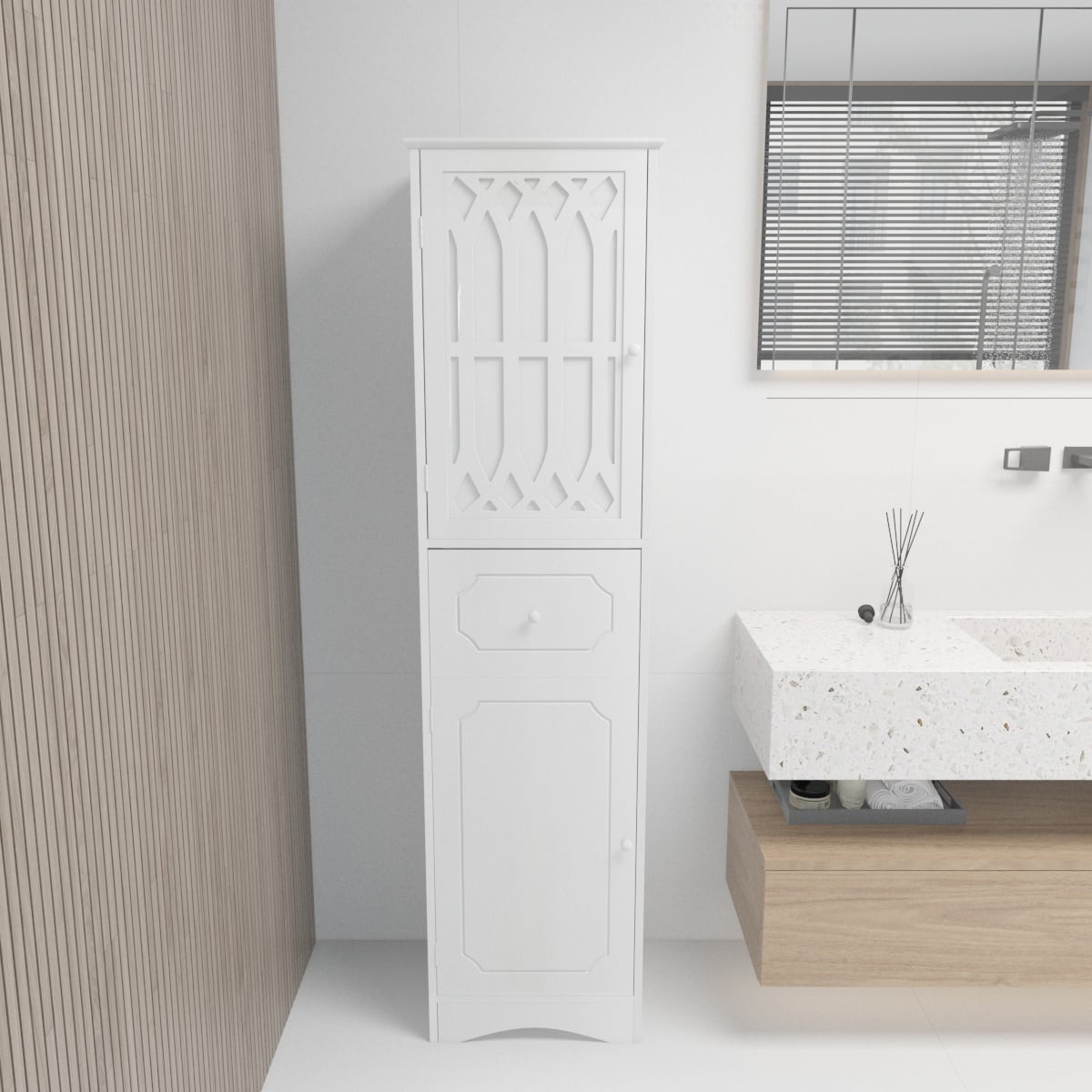 Tall Storage Bathroom Cabinet with Adjustable Shelf, Free Standing Floor Storage Tower with Drawer and Doors, Narrow Cabinet