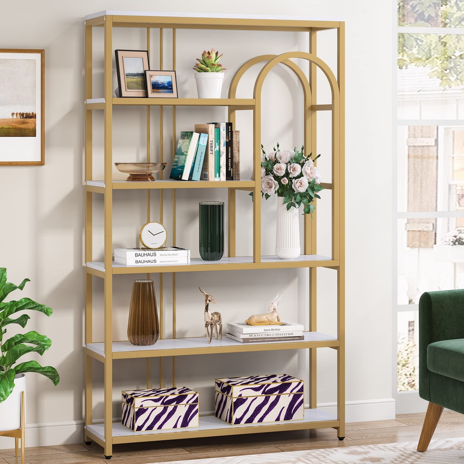 Gold Bookshelf, 6 Shelf Etagere Bookcase, 71 inch Tall Modern Bookshelves Display Shelf Storage Organizer
