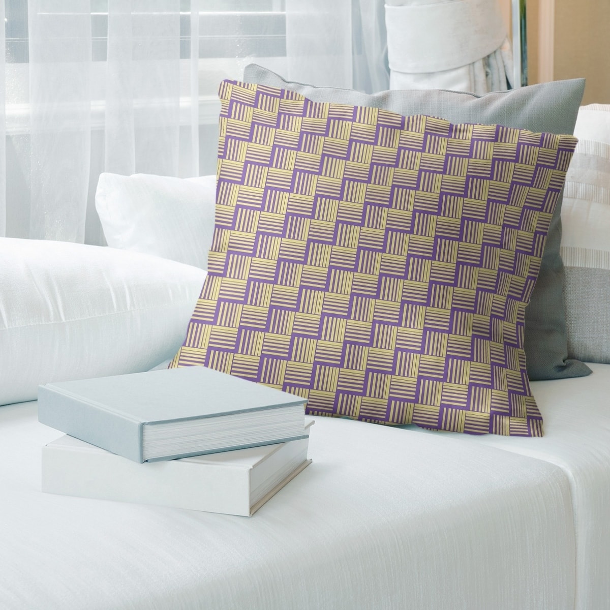 Two Color Basketweave Stripes with Yellow Throw Pillow