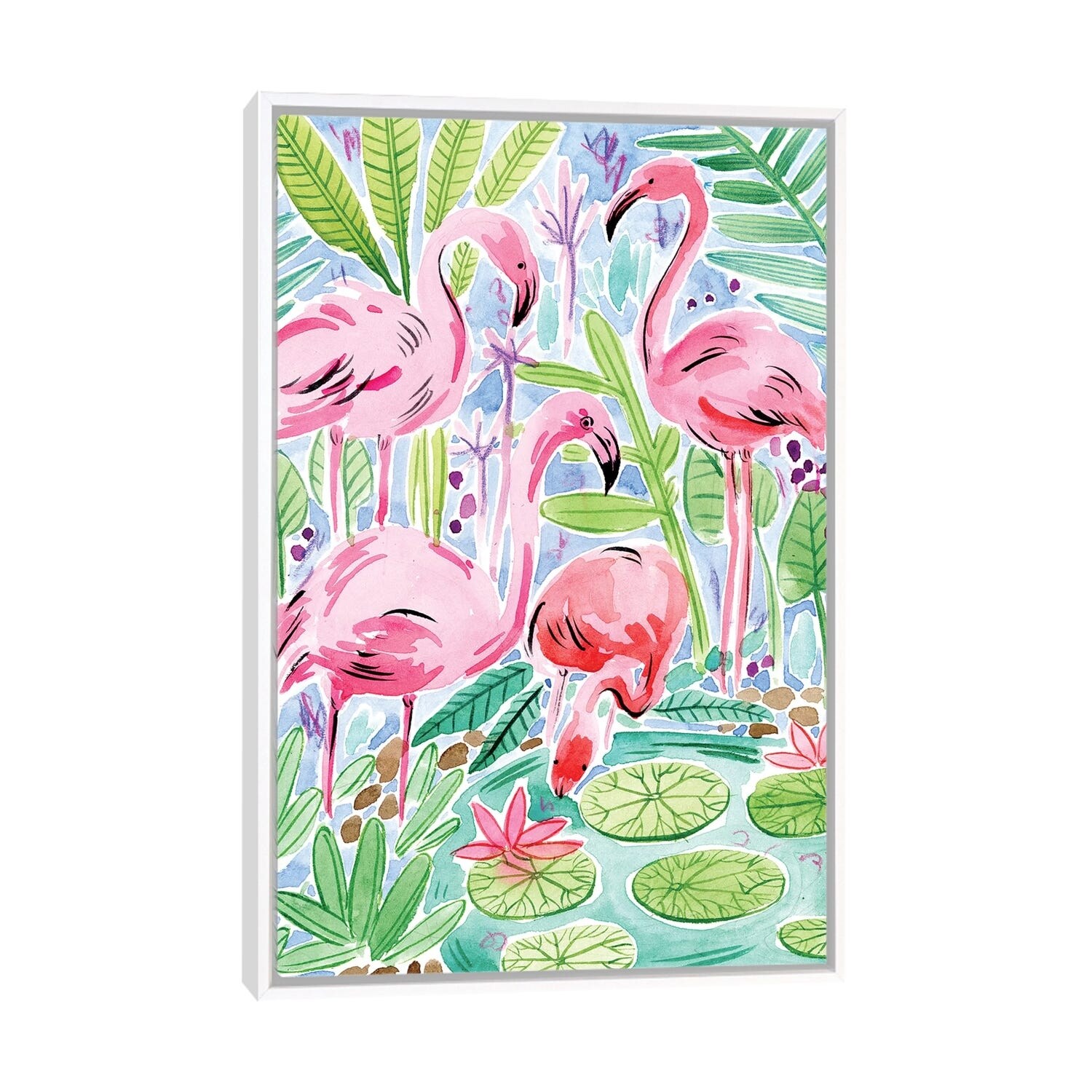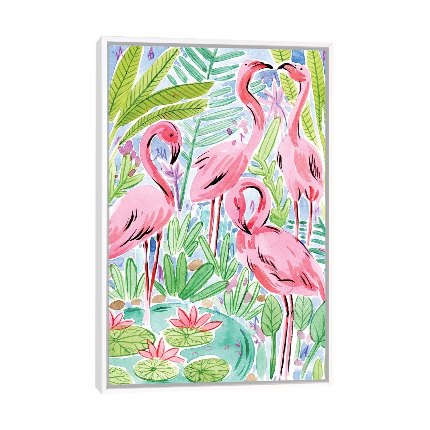 iCanvas "Flamingos Synchro Swim" by Amelie Legault Framed Canvas Print