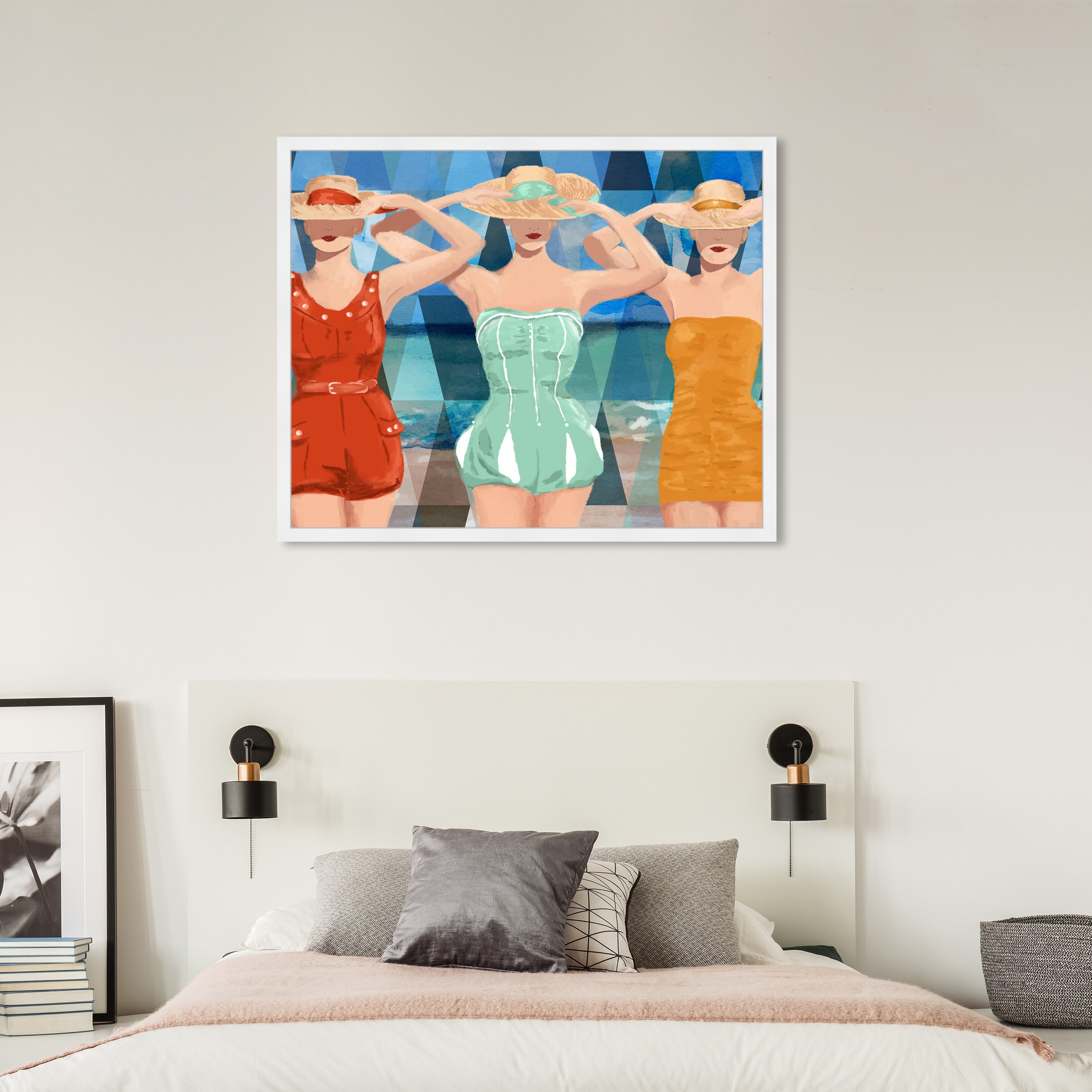 Oliver Gal 'Swimming Beauties' Fashion and Glam Framed Wall Art Prints Outfits - Blue, Red