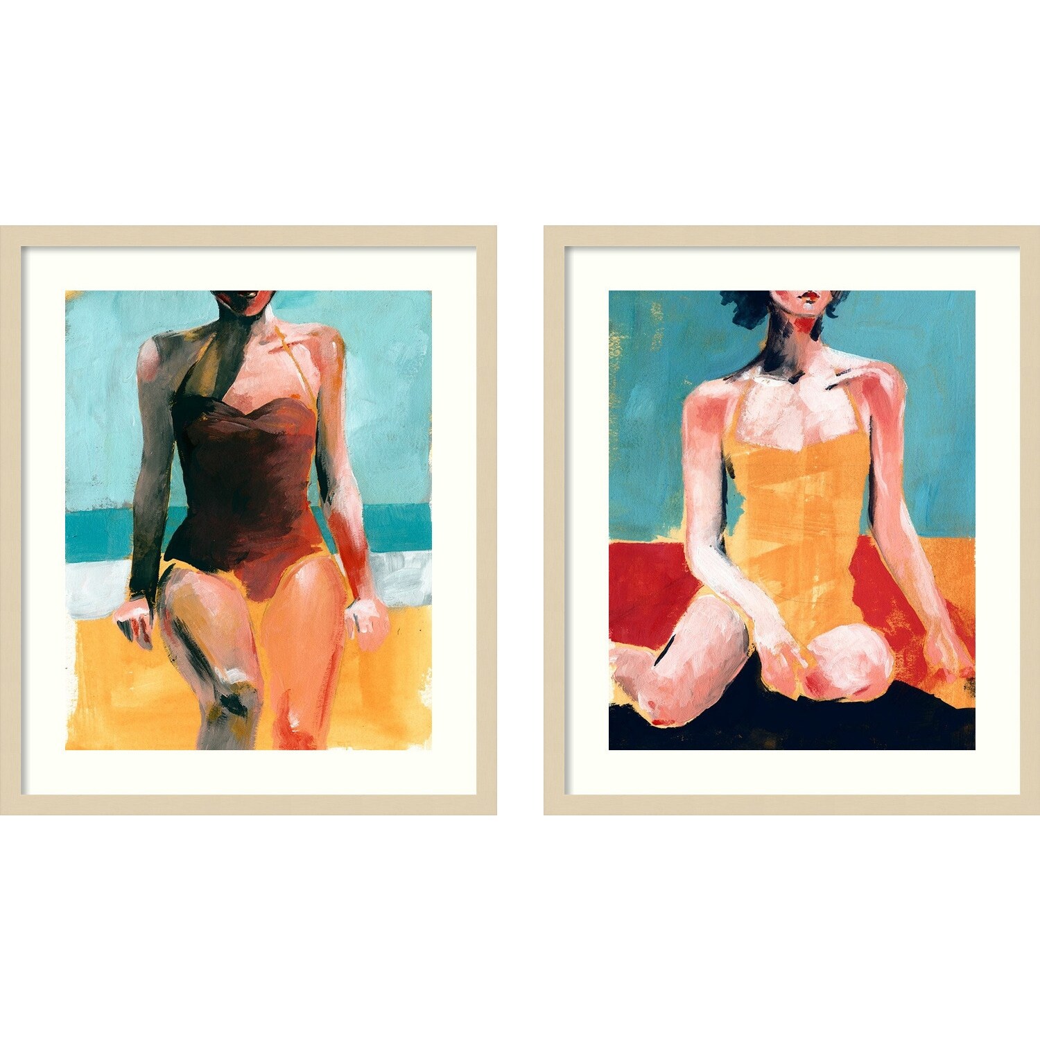 Oliver Gal Fashion and Glam Wall Art Framed Canvas Prints 'Swimming Beauties' Outfits - Blue, Red