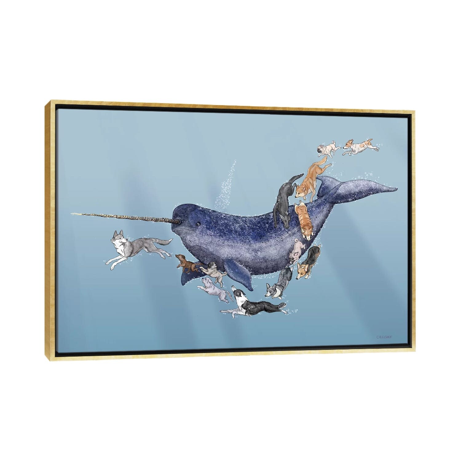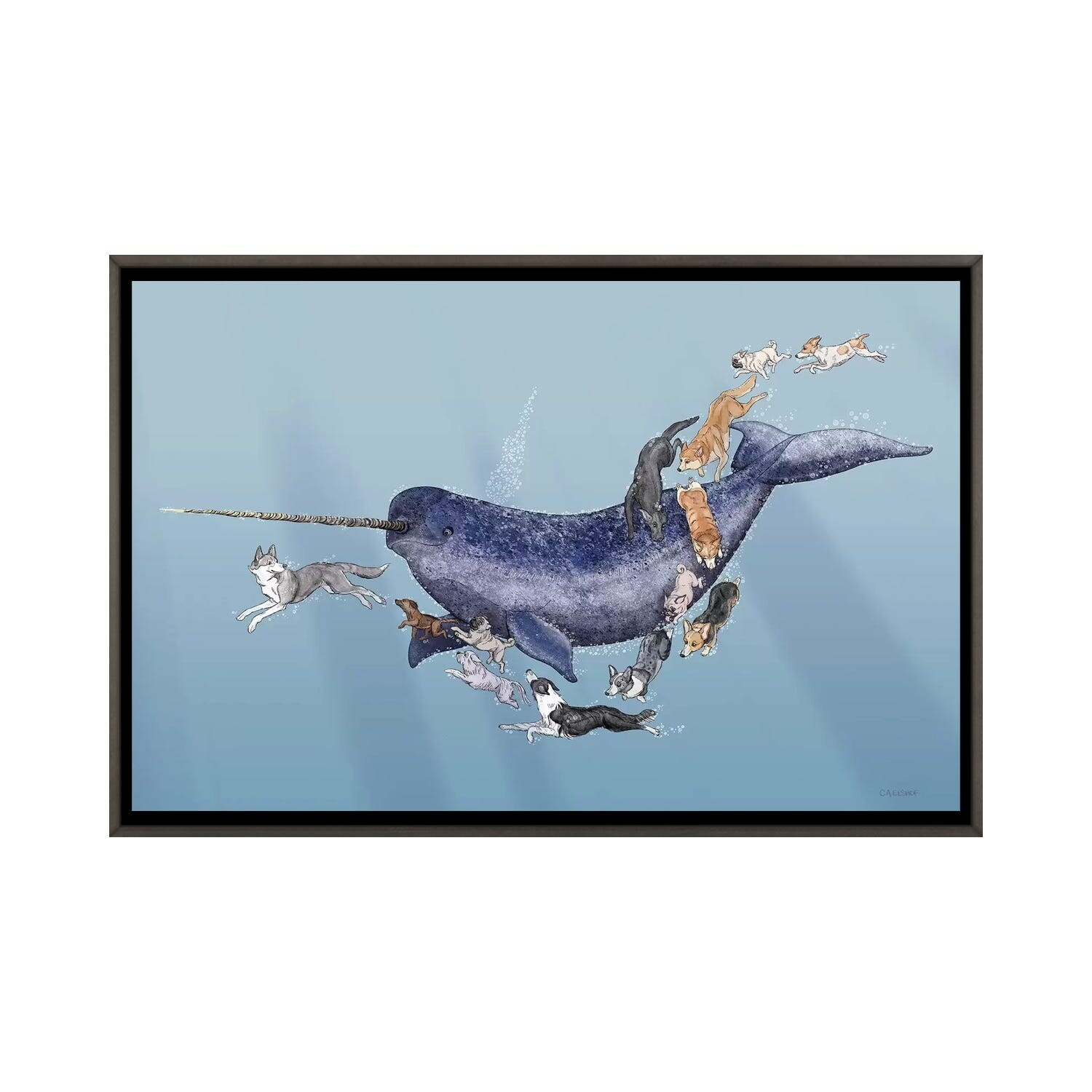 iCanvas "Dogs Swimming With Narwhals" by Carolynn Elshof Framed