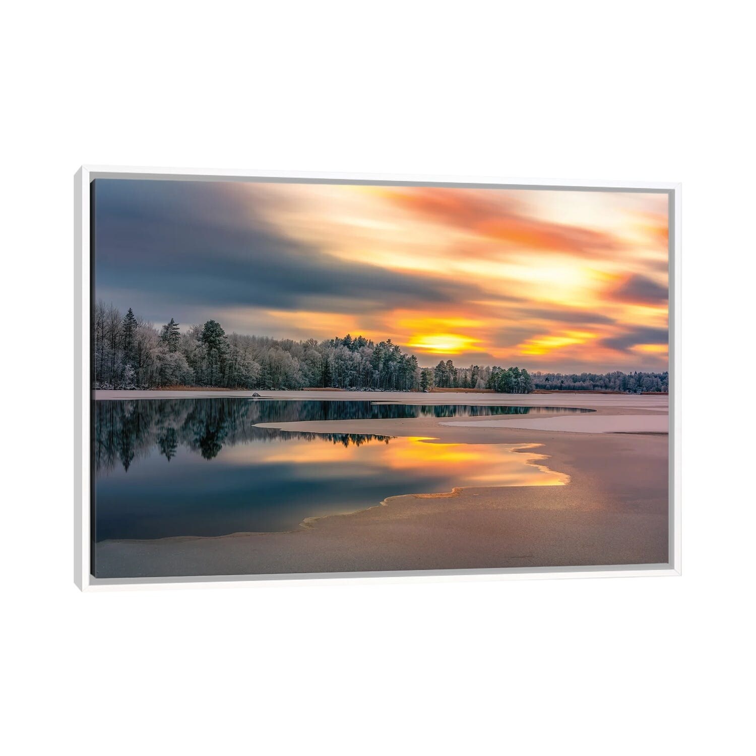 iCanvas "Ice Slowly Taking Over the Lake" by Christian Lindsten Framed