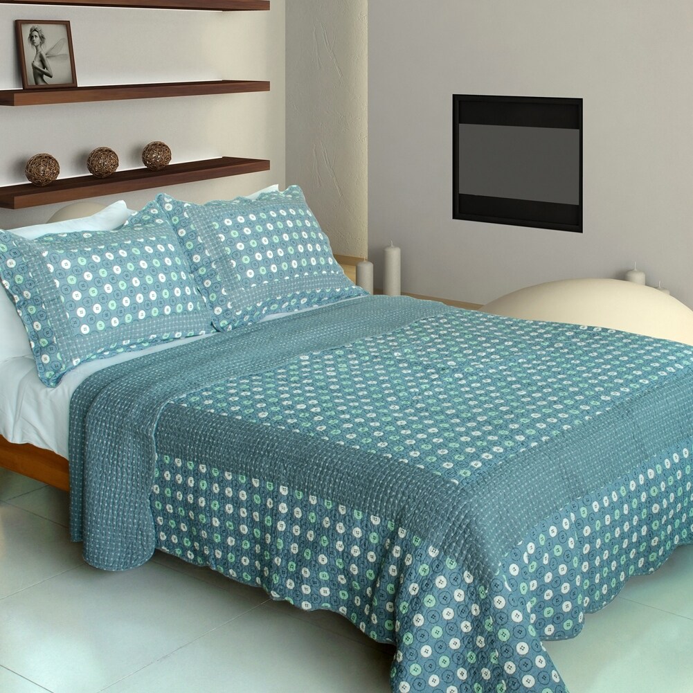 Take This Waltz 100% Cotton 3PC Vermicelli-Quilted Patchwork Quilt Set (Full/Queen Size)