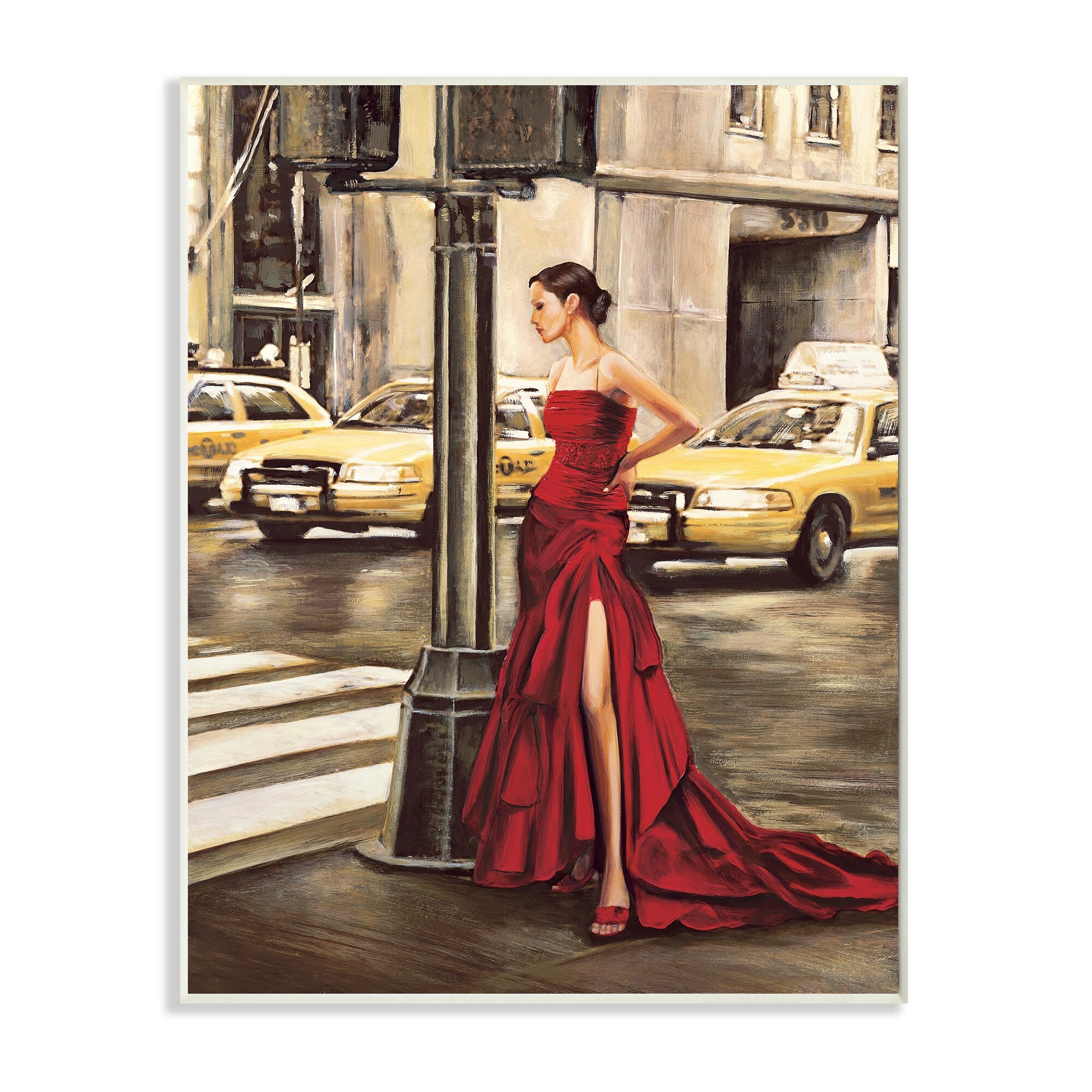Stupell City Taxi Crosswalk Glam Fashion Red Gown Wood Wall Art