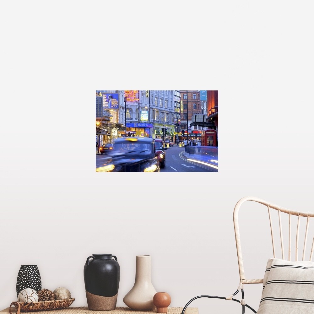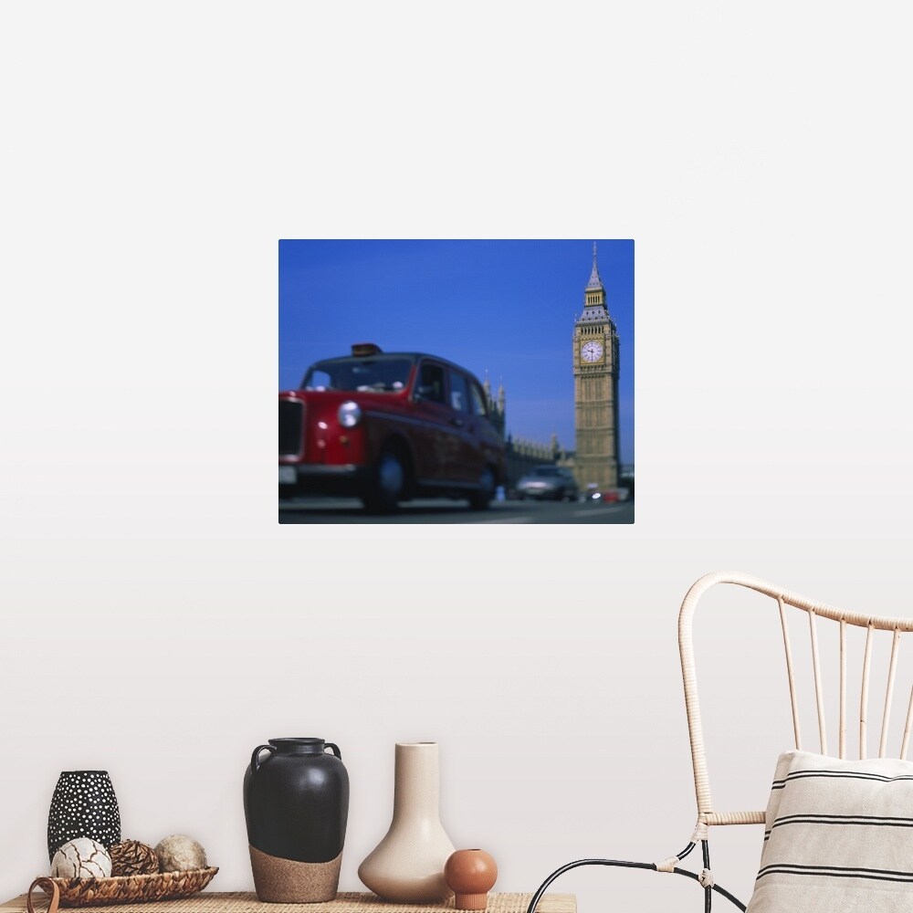 "Taxi on the road with clock tower in the background, Big Ben, London, England" Poster Print - Multi