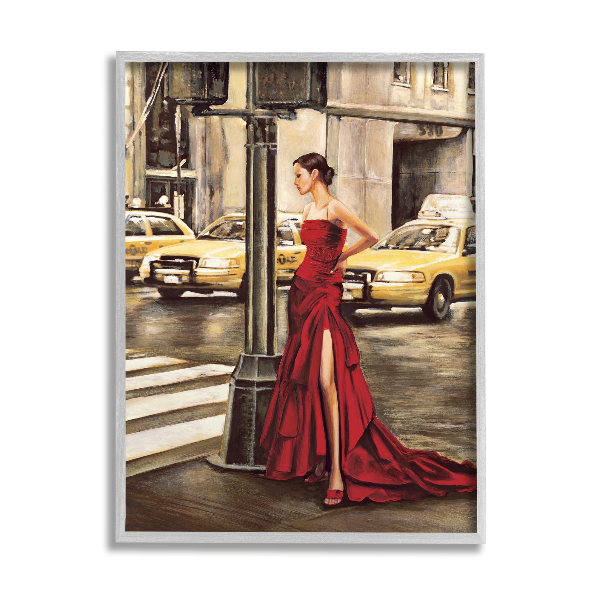 Stupell Industries City Taxi Crosswalk Glam Fashion Red Gown Framed Wall Art