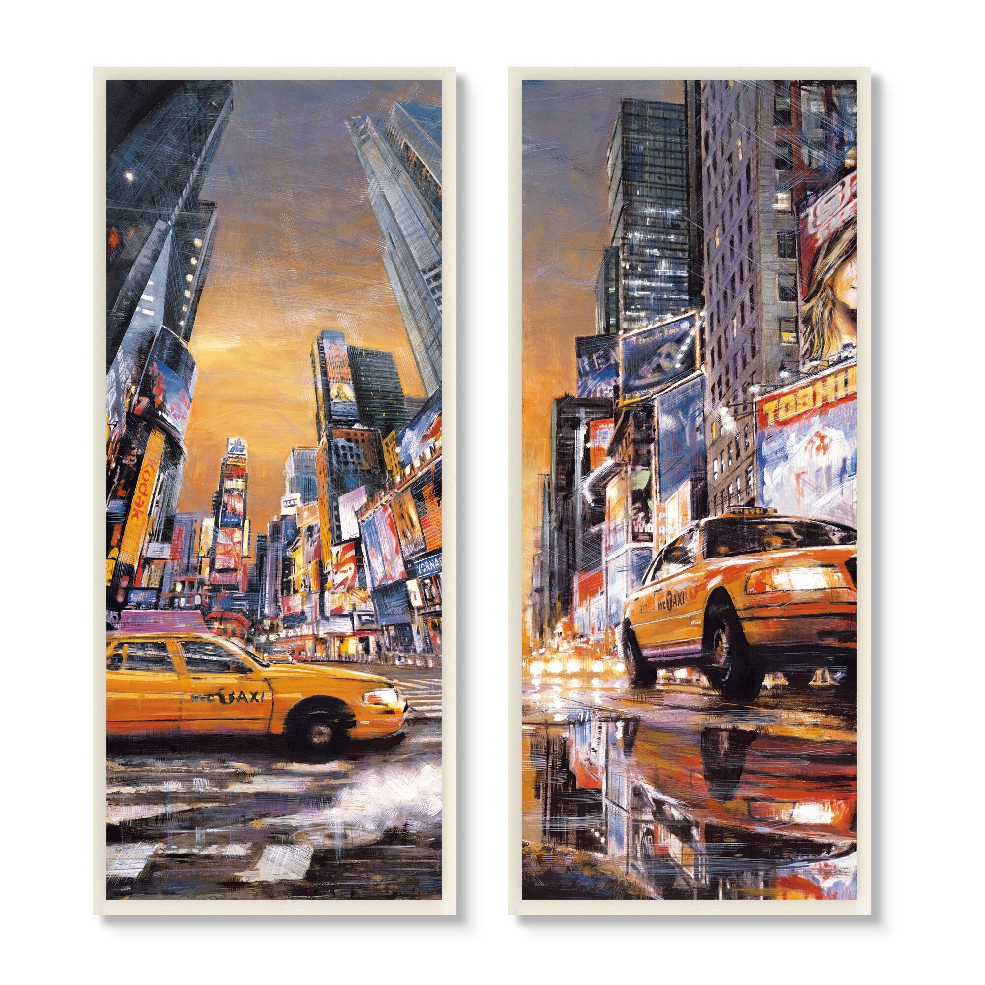 Stupell Industries Time Square New York City Taxi Urban Cityscape , 2pc Multi Piece Canvas Wall Art Set
