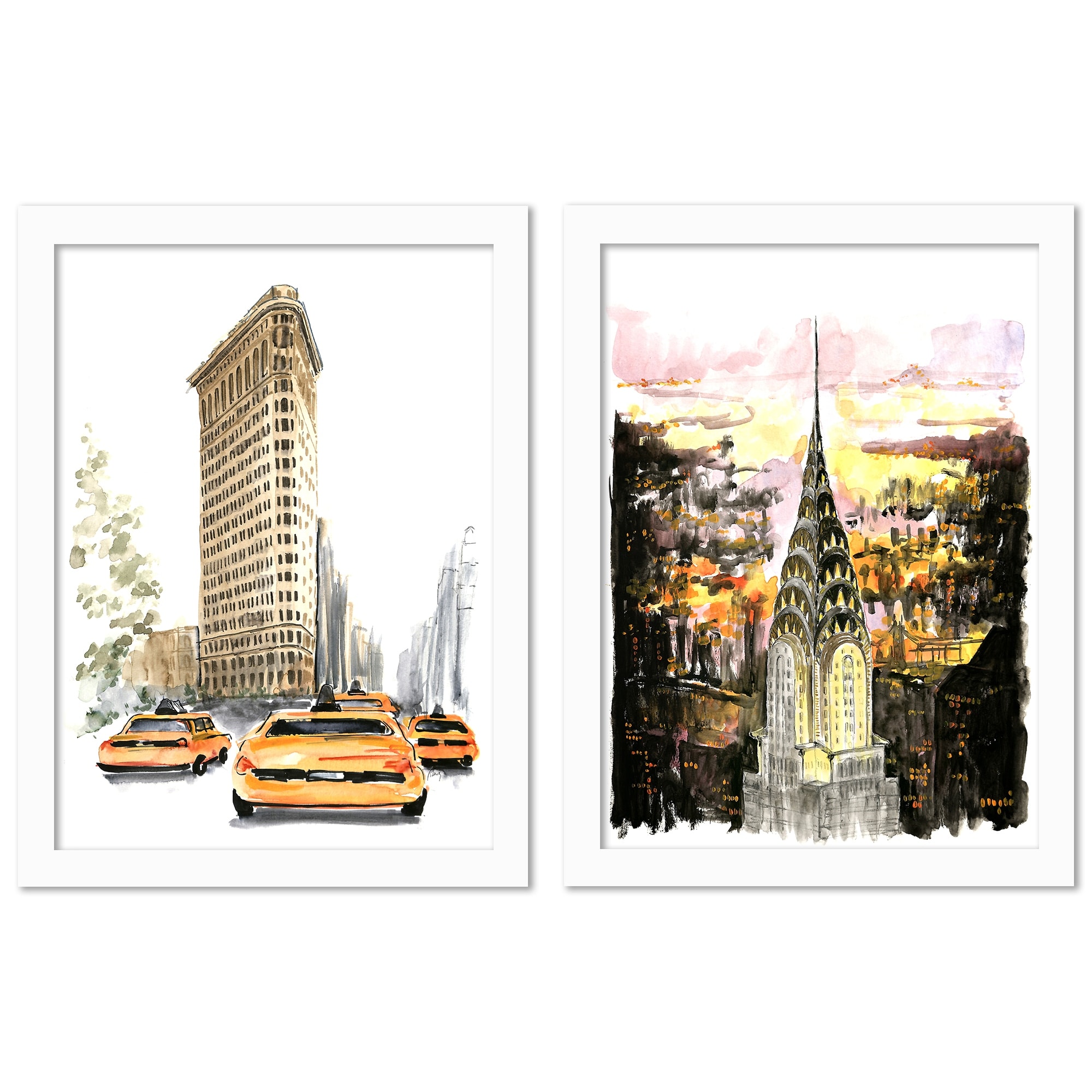 Orange Taxis in New York 2 Piece White Framed Print Wall Art Set