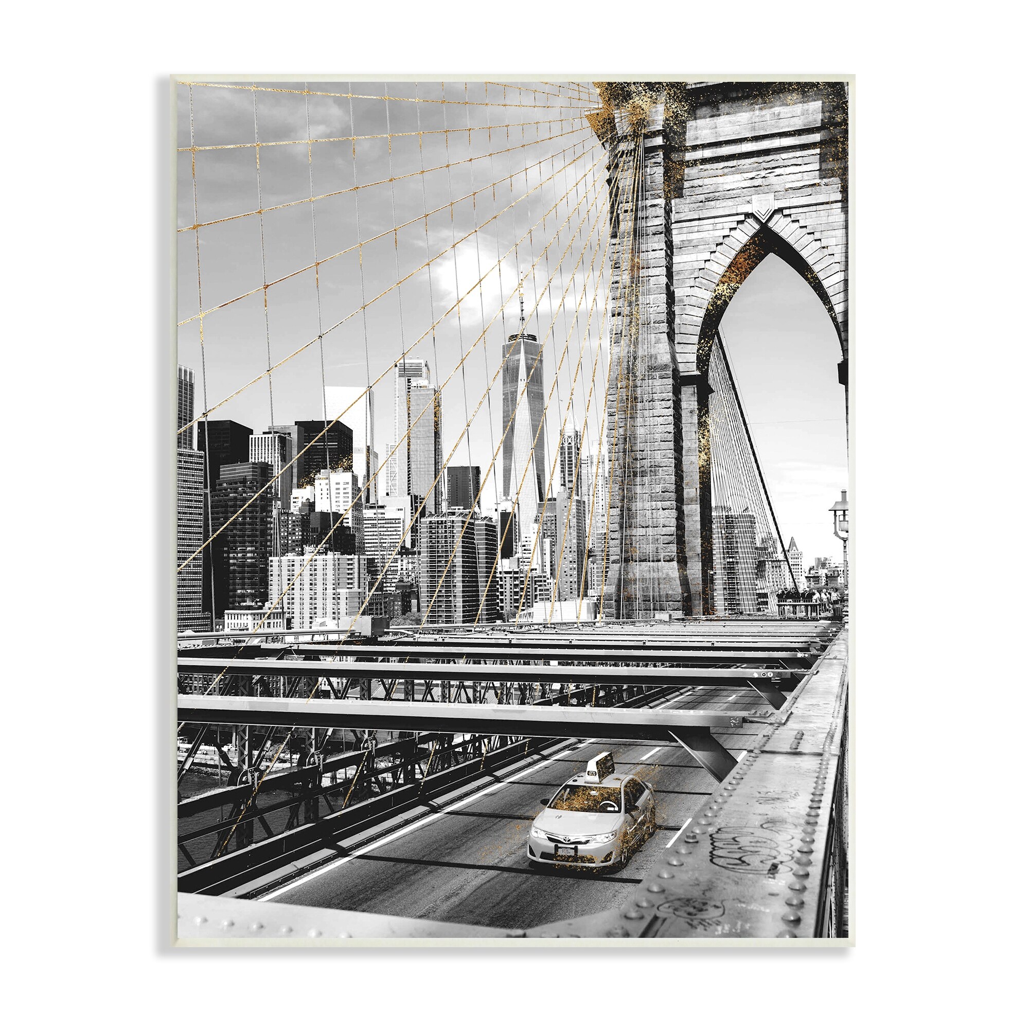 Stupell Industries Brooklyn Bridge Urban City Architecture Taxi Driving Photography Wood Wall Art - Grey
