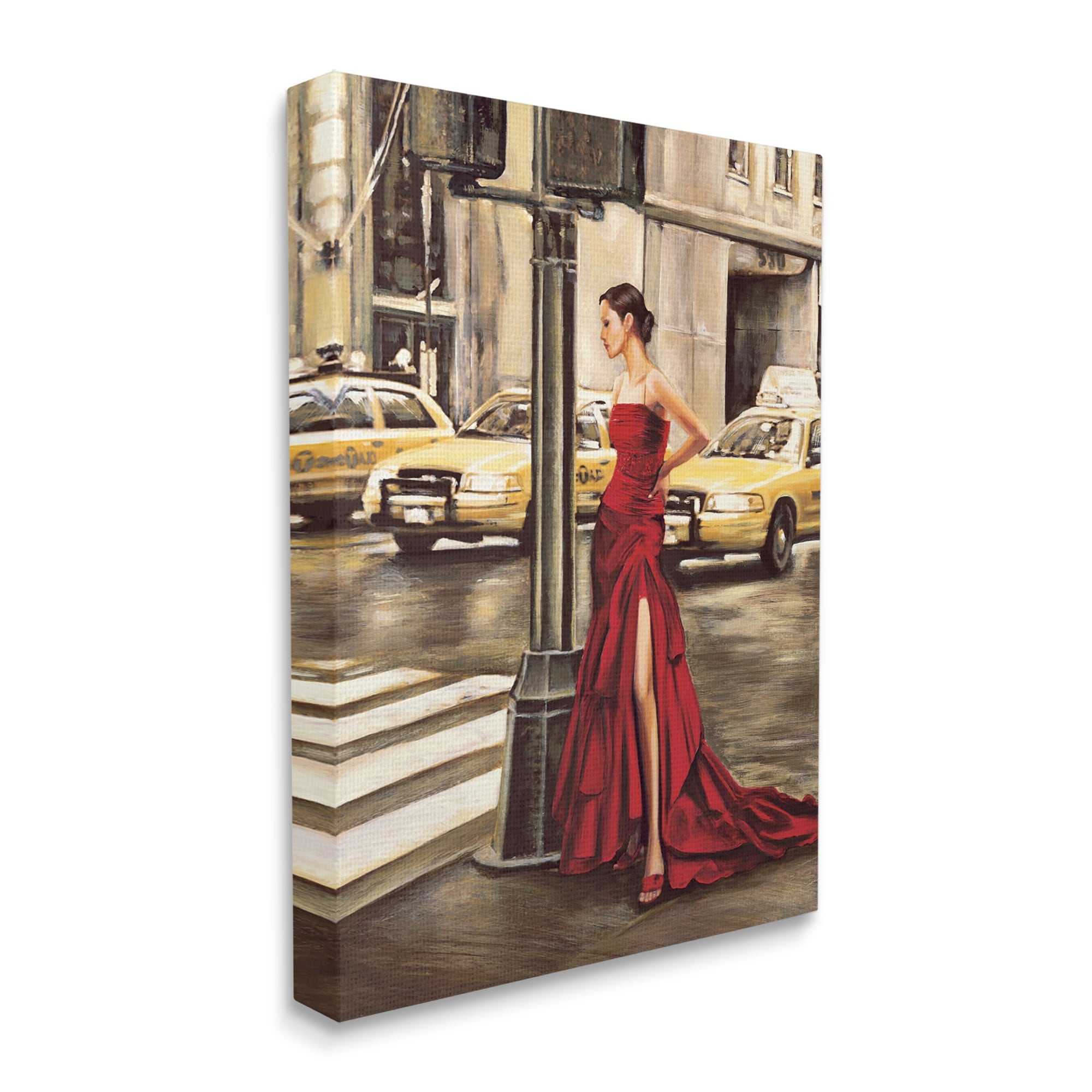 Stupell City Taxi Crosswalk Glam Fashion Red Gown Canvas Wall Art