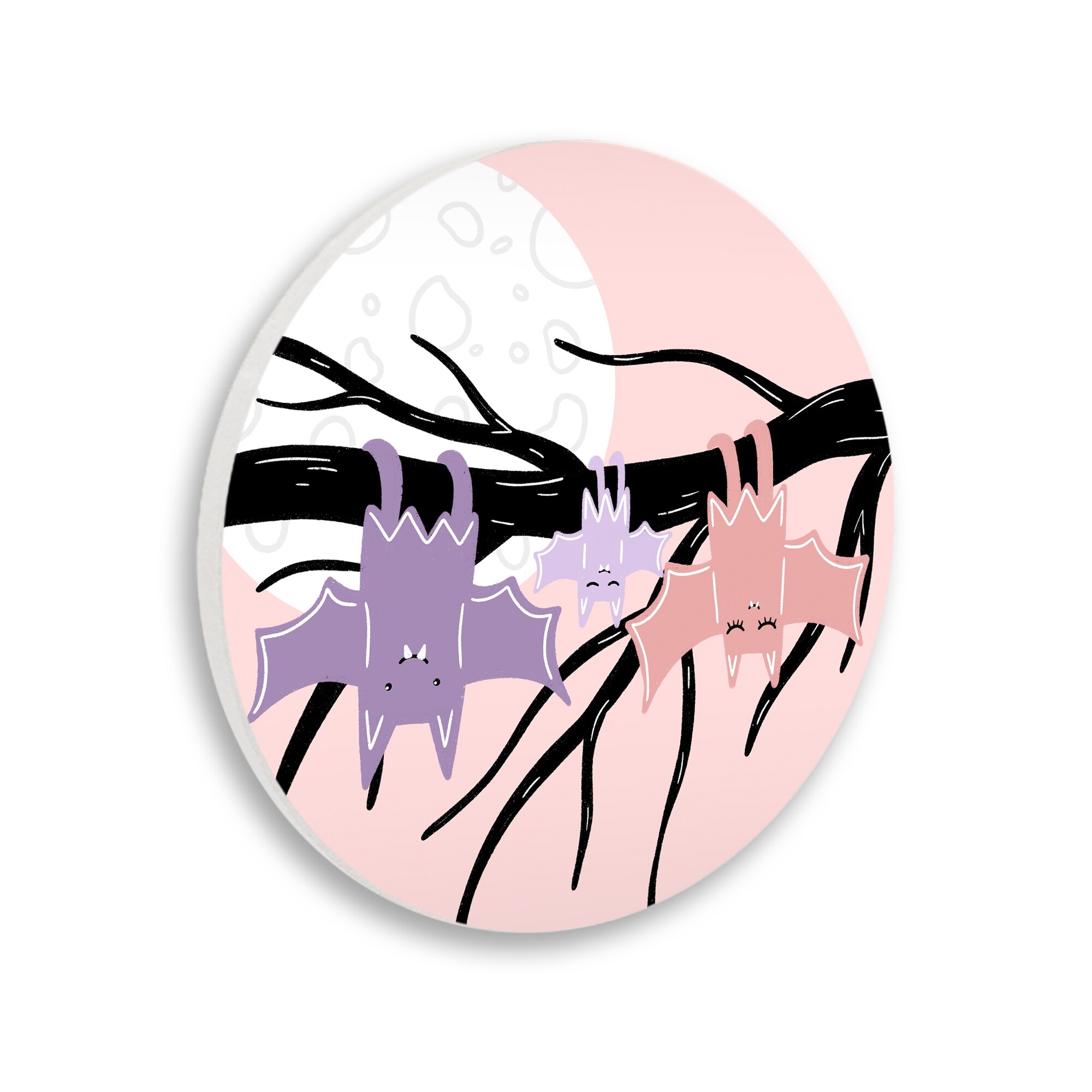 Stupell Whimsical Smiling Bats Hanging Moonlit Pastel Sky Wood Wall Art, Design by Dominika Godette