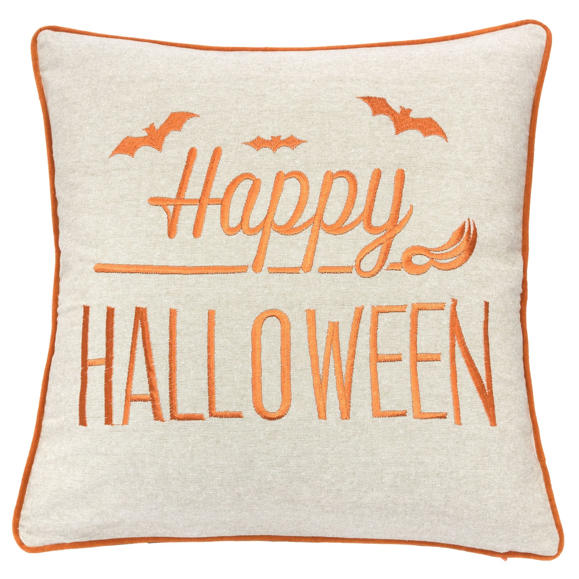 Happy Halloween Bat Broom Witch Linen Polyester Linen 20"x20" Orange Throw Pillow with Insert