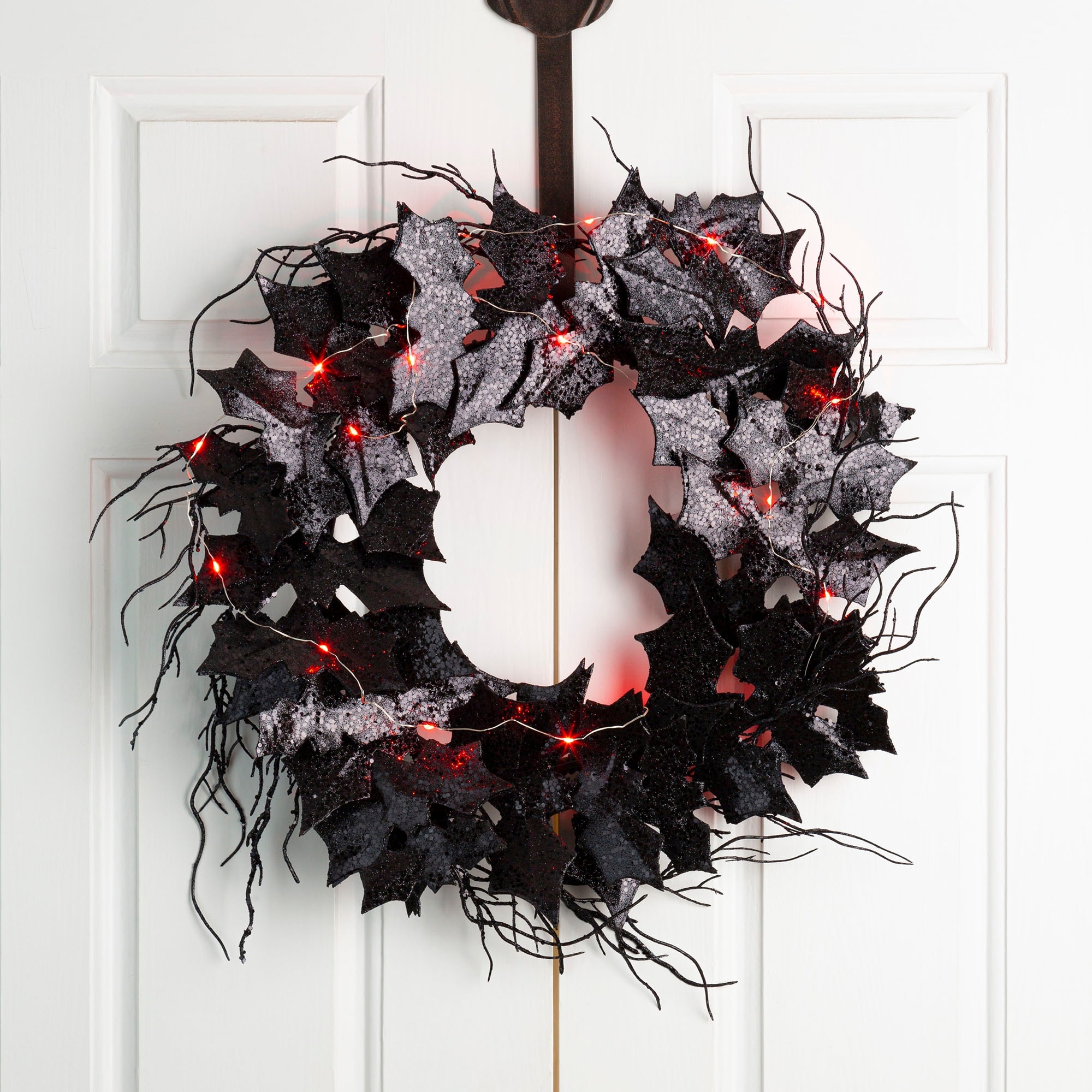 Glitzhome 26"D Pre-li LED Halloween Bat Wreath