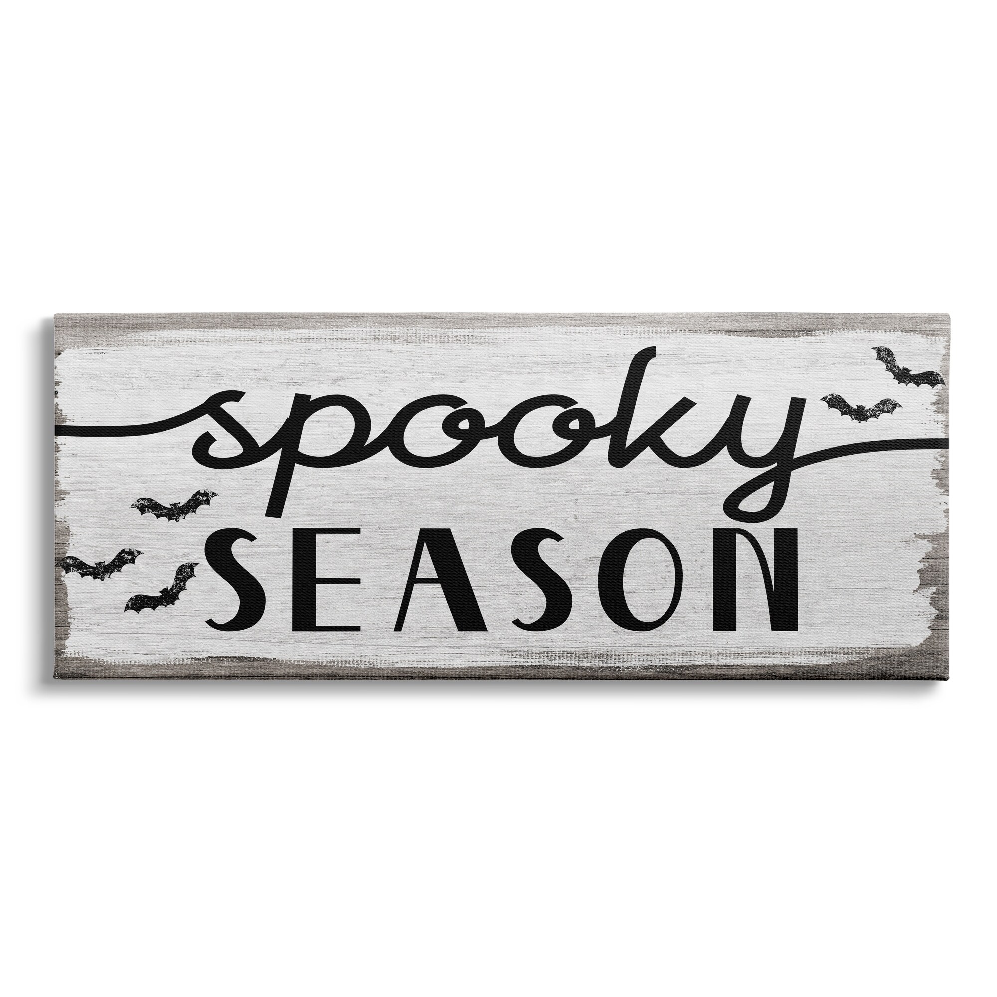Stupell Industries Spooky Season Sign Black Bats Halloween Phrase Canvas Wall Art - Grey