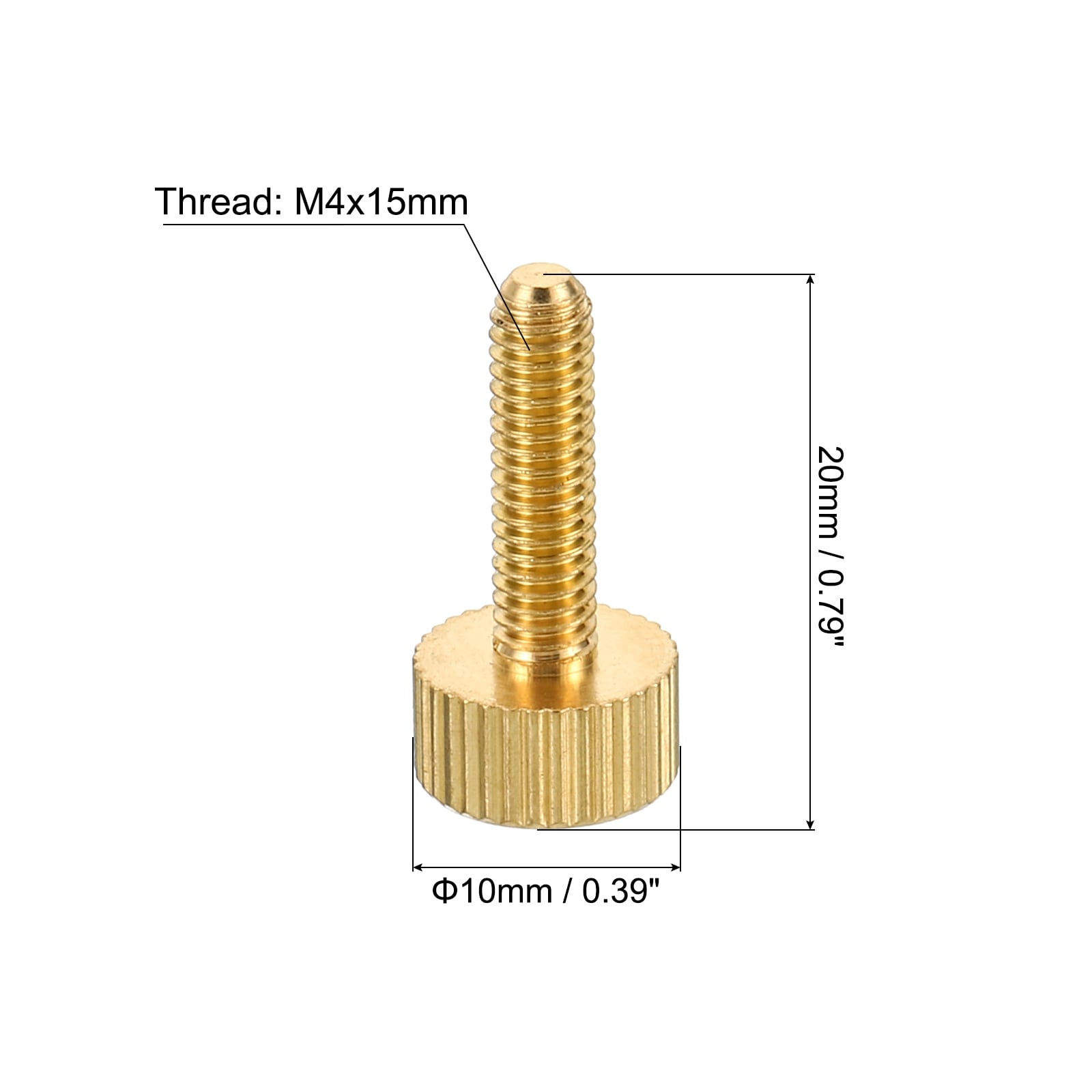 5pcs M4x18mm Knurled Thumb Screws Flat Tip Brass Bolts Grip Knobs Fasteners - Brass Tone