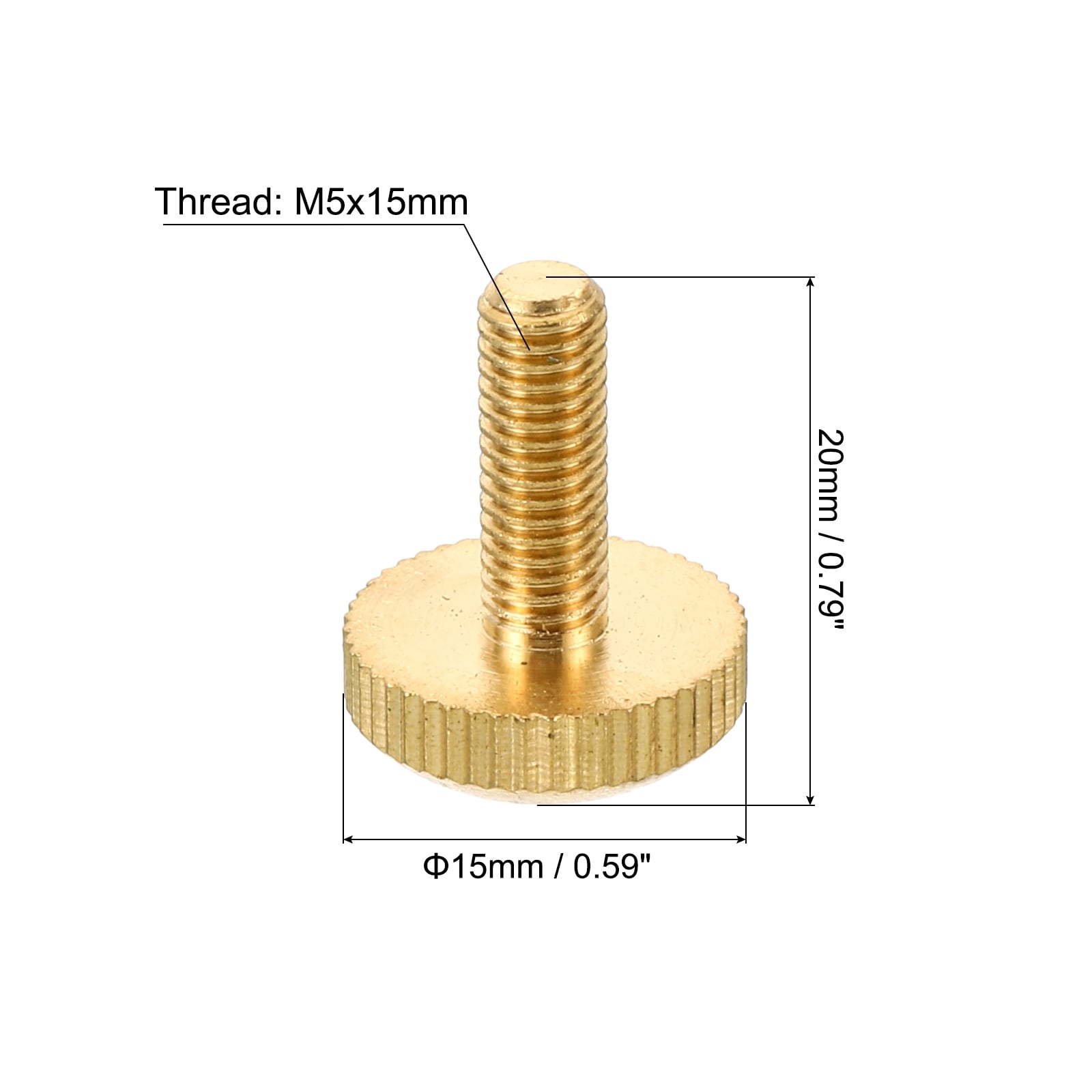 5pcs M5x15mm Knurled Thumb Screws Flat Tip Brass Bolts Grip Knobs Fasteners - Brass Tone
